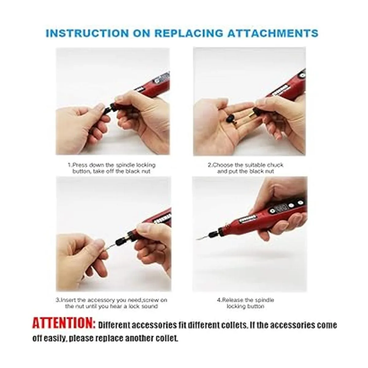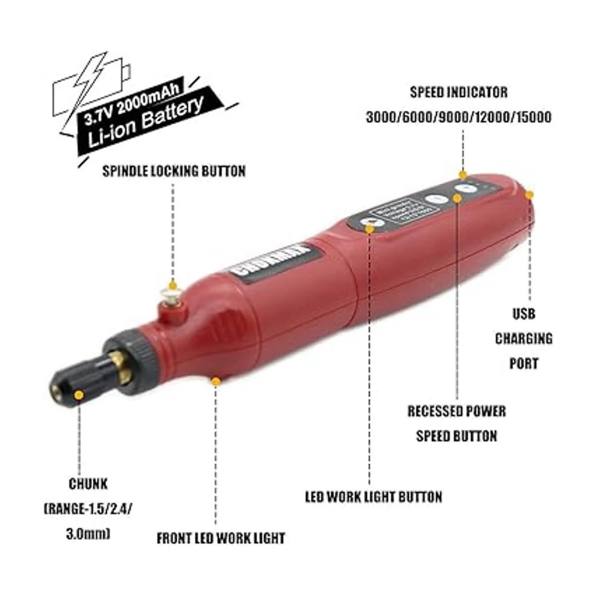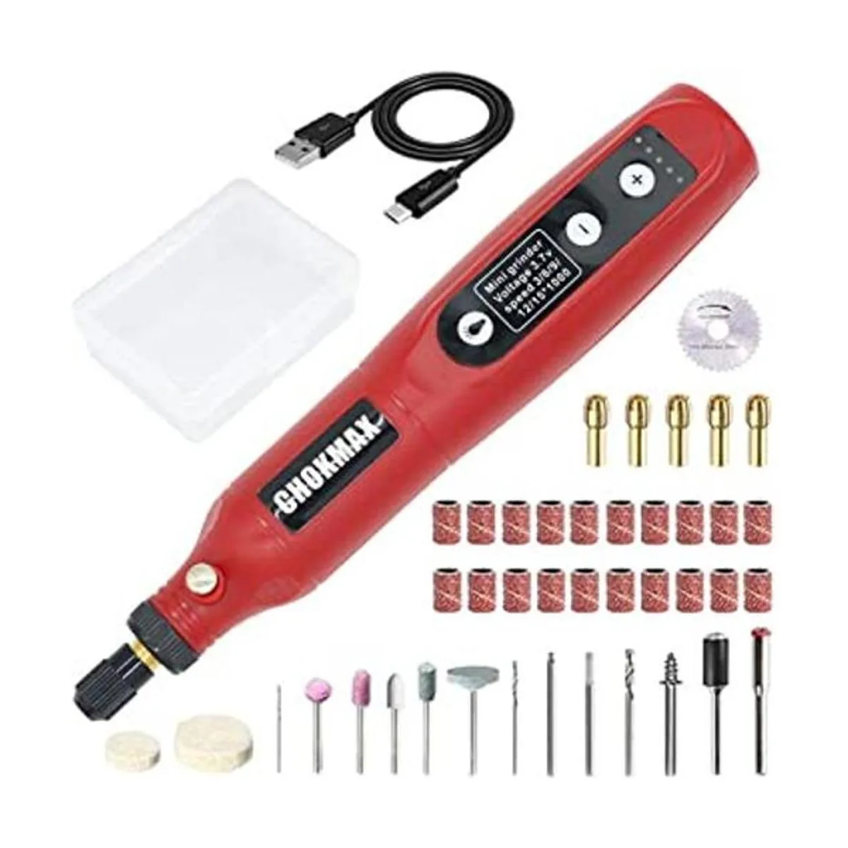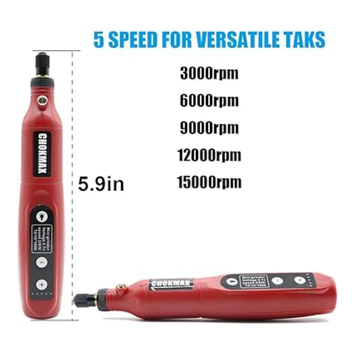 CHOKMAX Kit de herramientas giratorias inalámbricas, mini amoladora de 3.7 V con 5 velocidades variables, luz de trabajo LED frontal, 40 piezas, accesorios multiherramienta eléctrica para pulir, limpiar y grabar