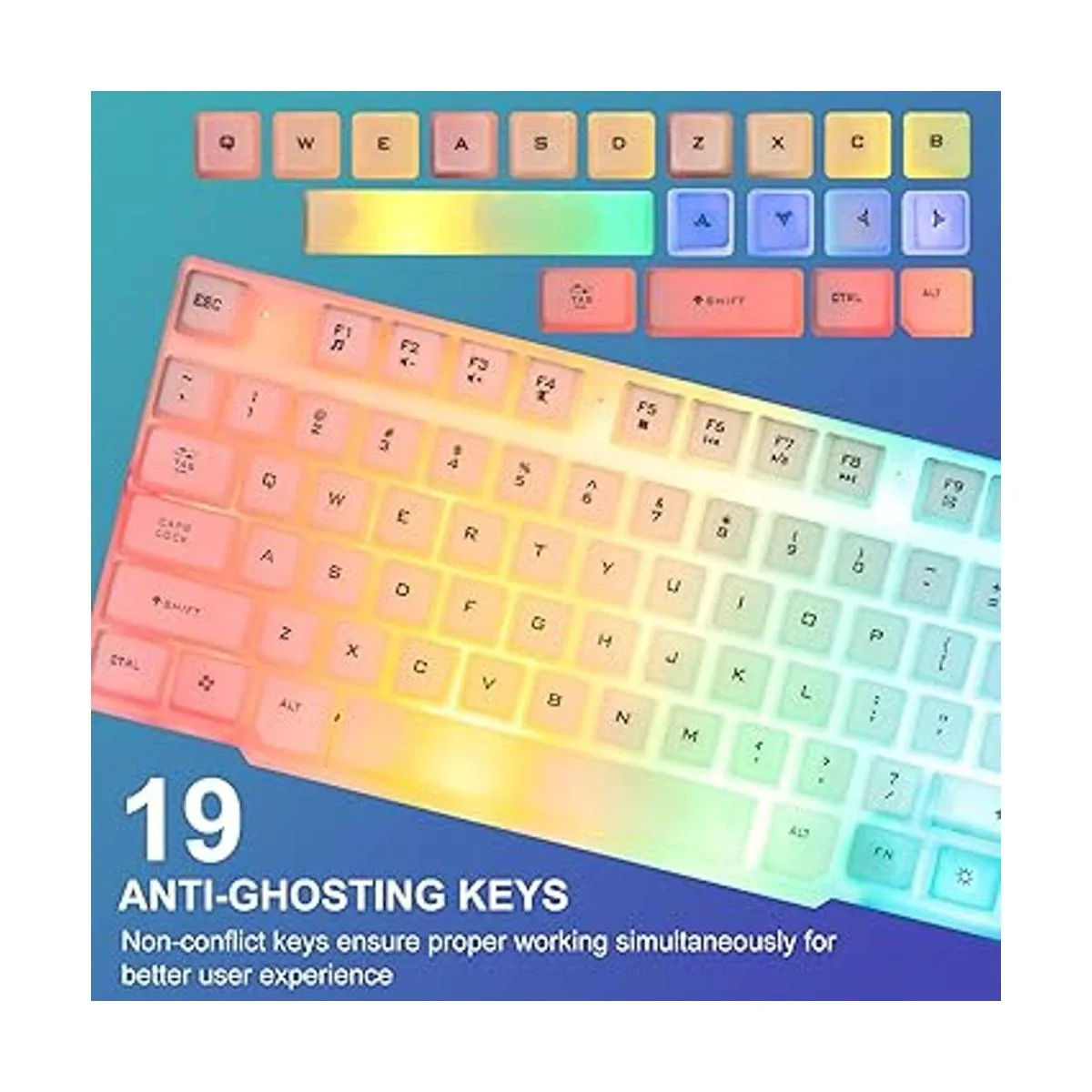 Teclado LED arcoíris para juegos: el teclado LED arcoíris, con retroiluminación arcoíris y teclas blancas tiene un efecto altamente translúcido, lo que te ofrece el mejor ambiente de juego. Con una selección de luces estáticas/de modo de respiración, también puedes ajustar el brillo de la retroiluminación y la velocidad de respiración, o apagar la retroiluminación cuando no la necesites. Ideal para juegos o trabajo.