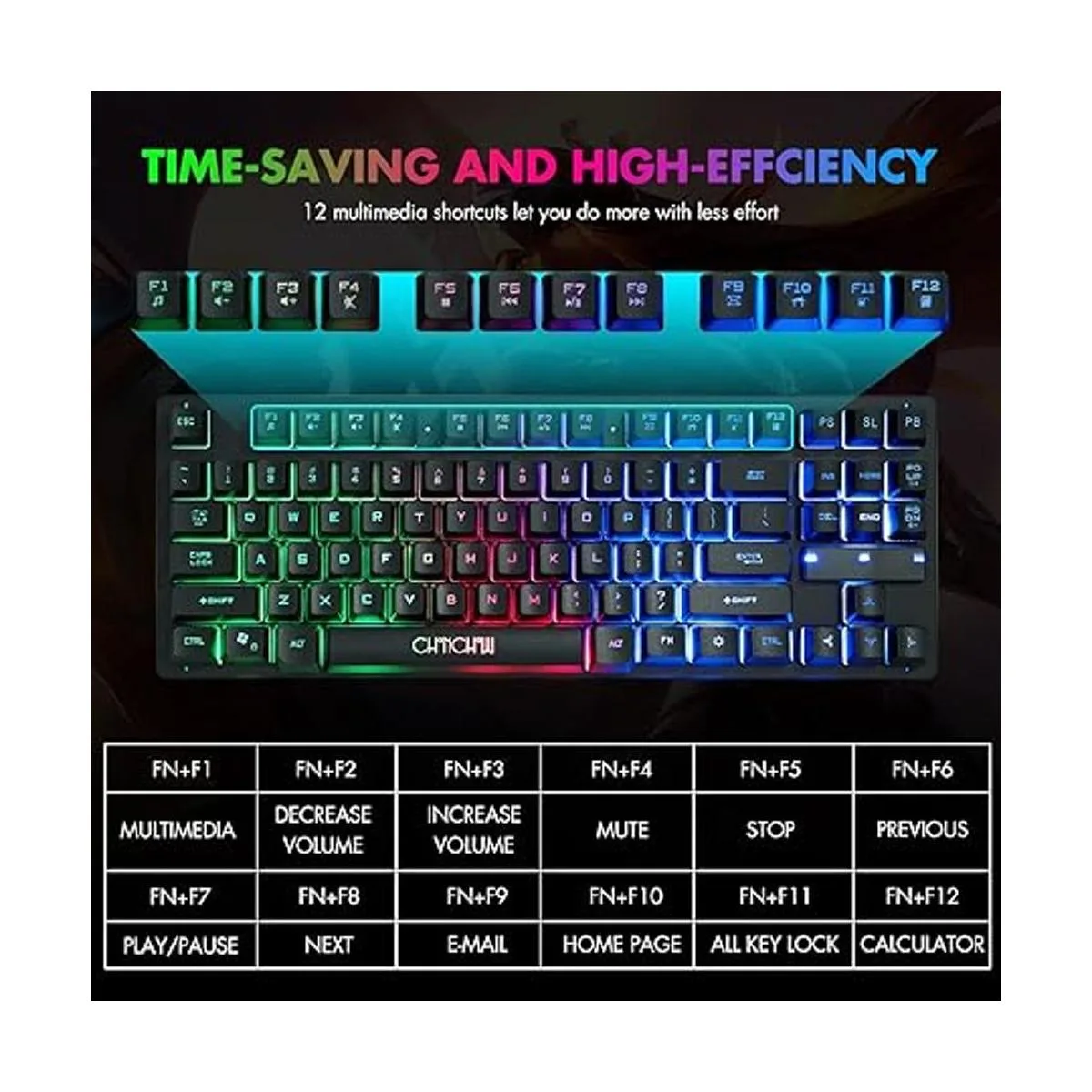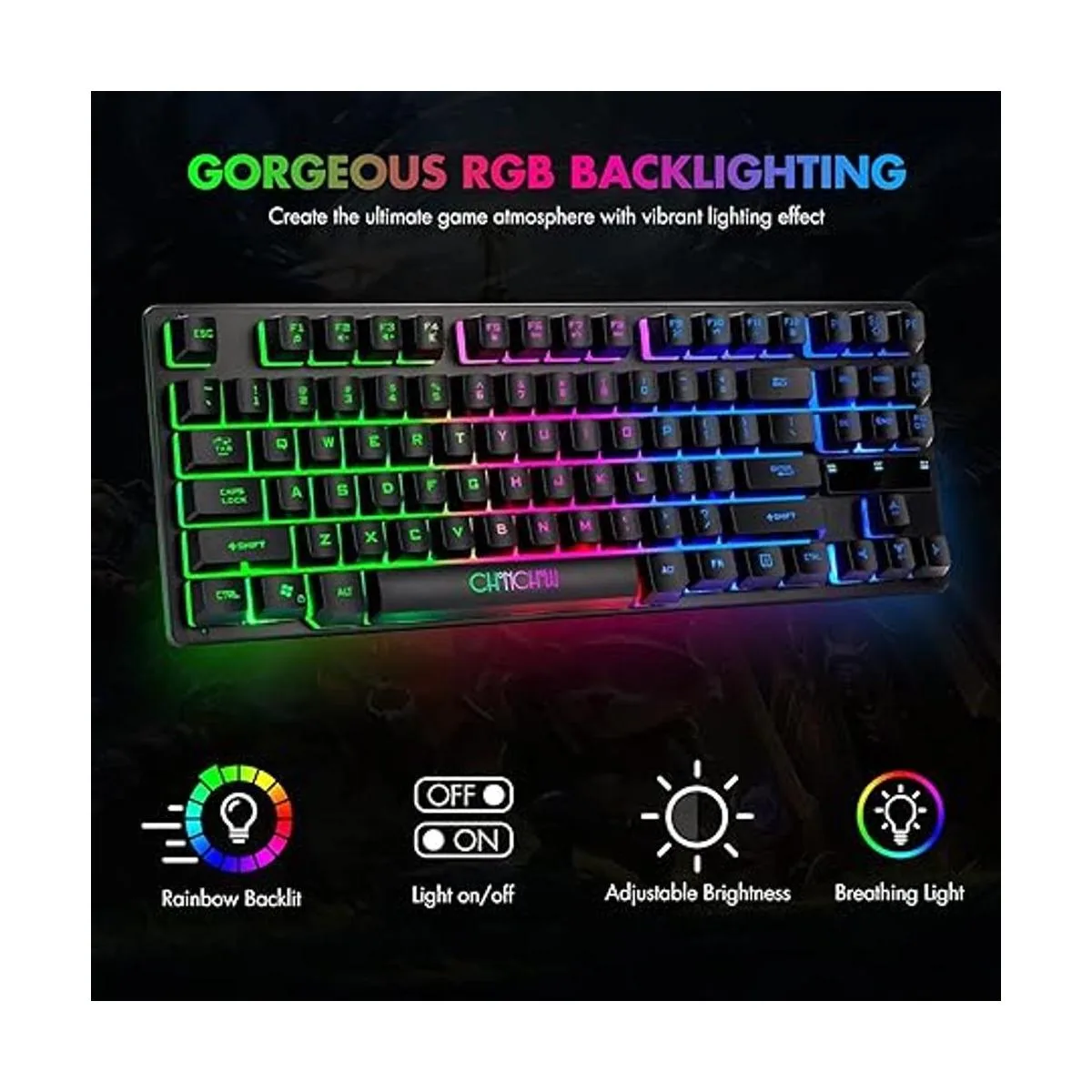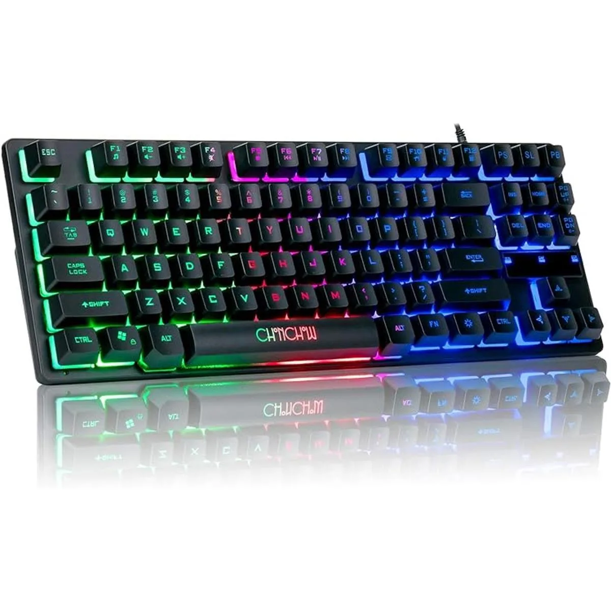 CHONCHOW Teclado compacto para juegos, teclado USB con cable de 87 teclas, teclado LED para juegos con retroiluminación arco iris sin tenteclas, teclado TKL, teclado RGB para juegos para laptop, Ps4, Xbox, PC, juego y trabajo