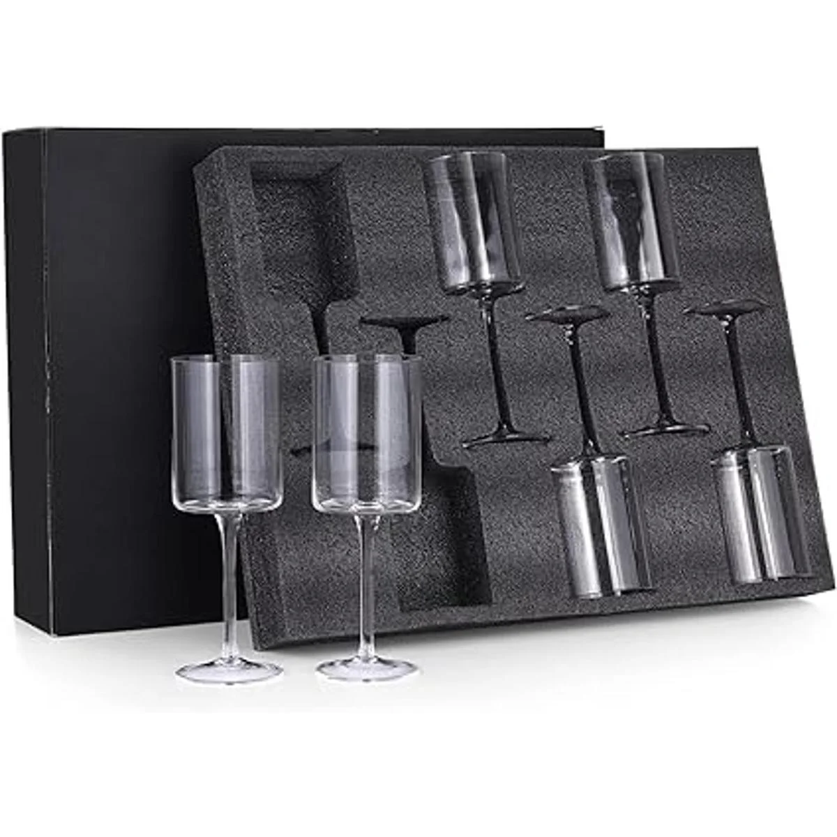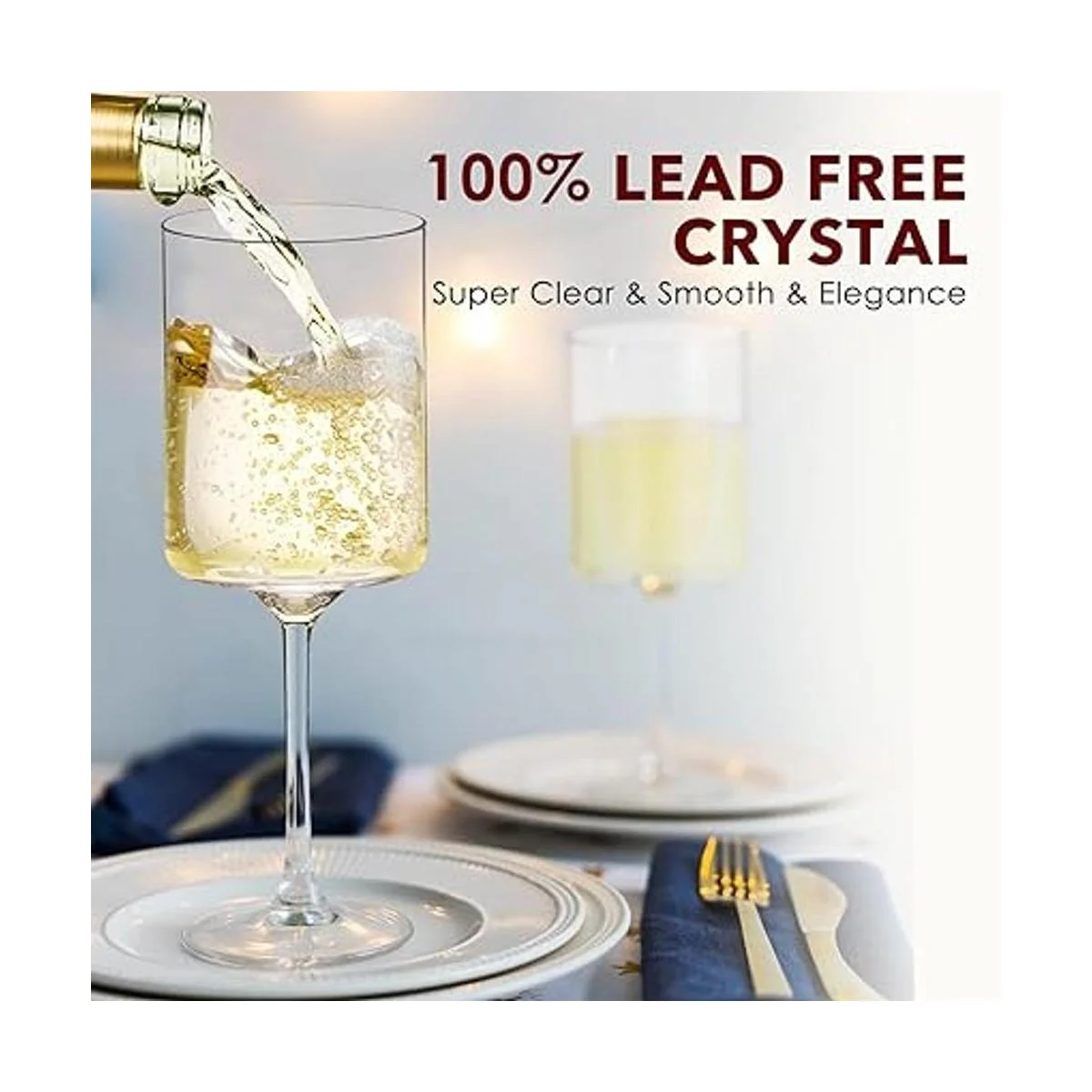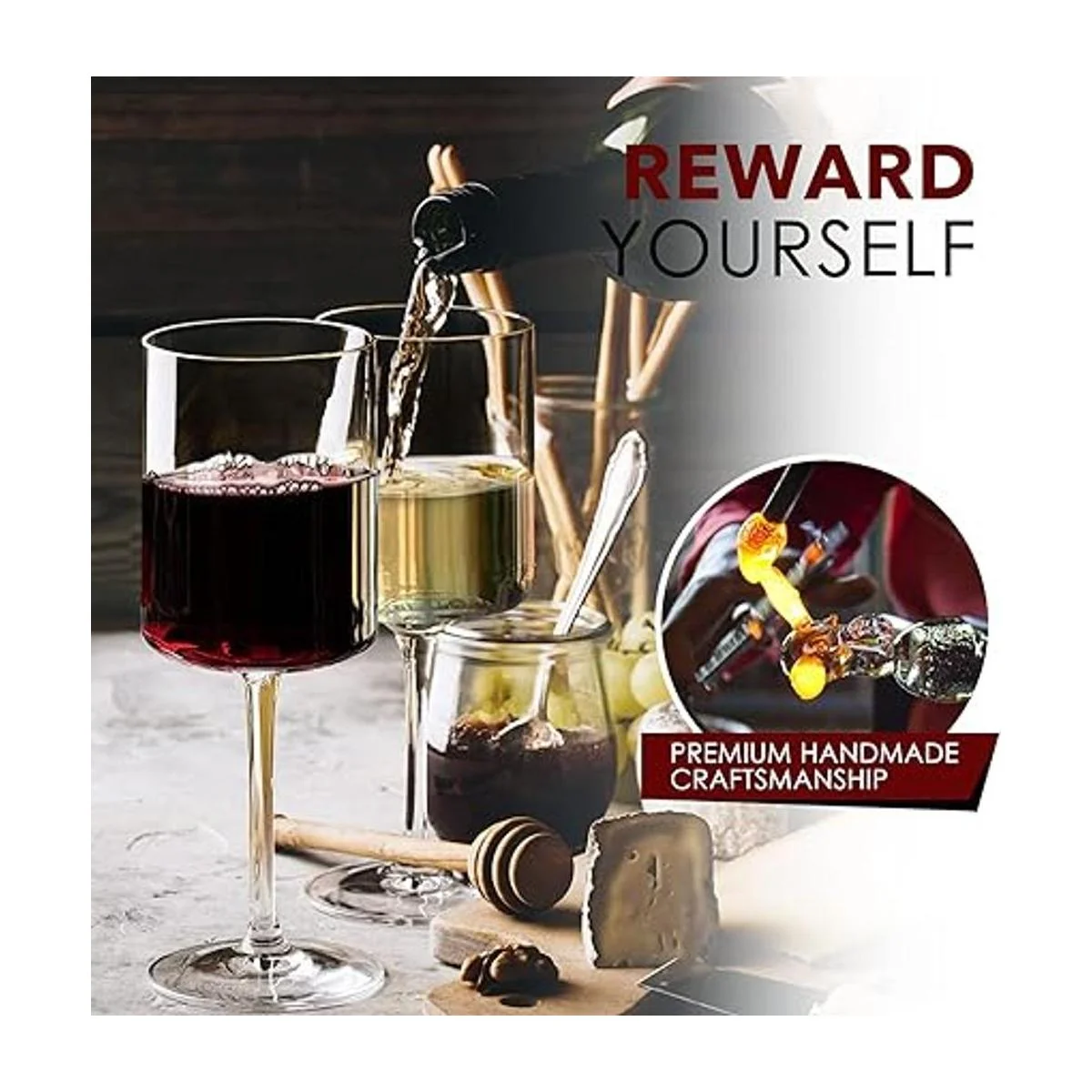 Chouggo Juego de 6 copas de vino cuadradas de cristal soplado a mano de 11.4 onzas, hechas a mano por artesanos, regalos para mujeres, hombres, bodas, aniversarios, Navidad, cumpleaños