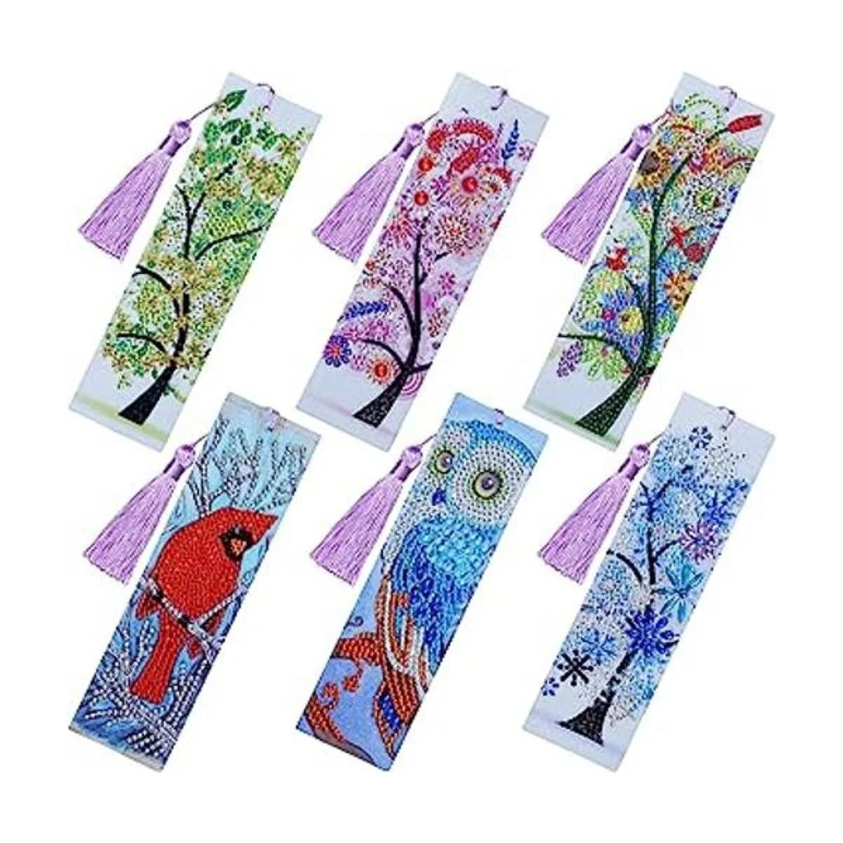 Diseño especial y hermoso: estos marcapáginas de pintura de diamante tienen 6 estilos, impresos con patrones florales temáticos de primavera, verano, otoño e invierno, además de búhos y pájaros, es un gran regalo para amigos al principio del año. Puedes cambiar los diferentes marcapáginas temáticos según las estaciones.