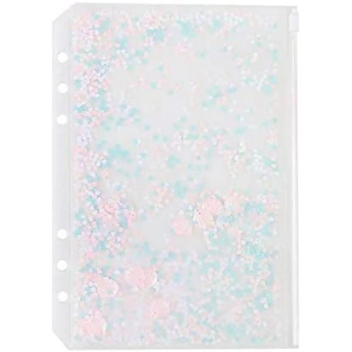 Chris.W 2 sobres de plástico transparente con cremallera para cuadernos A5 de 6 anillas, decoraciones integradas en copos de purpurina tamaño A5