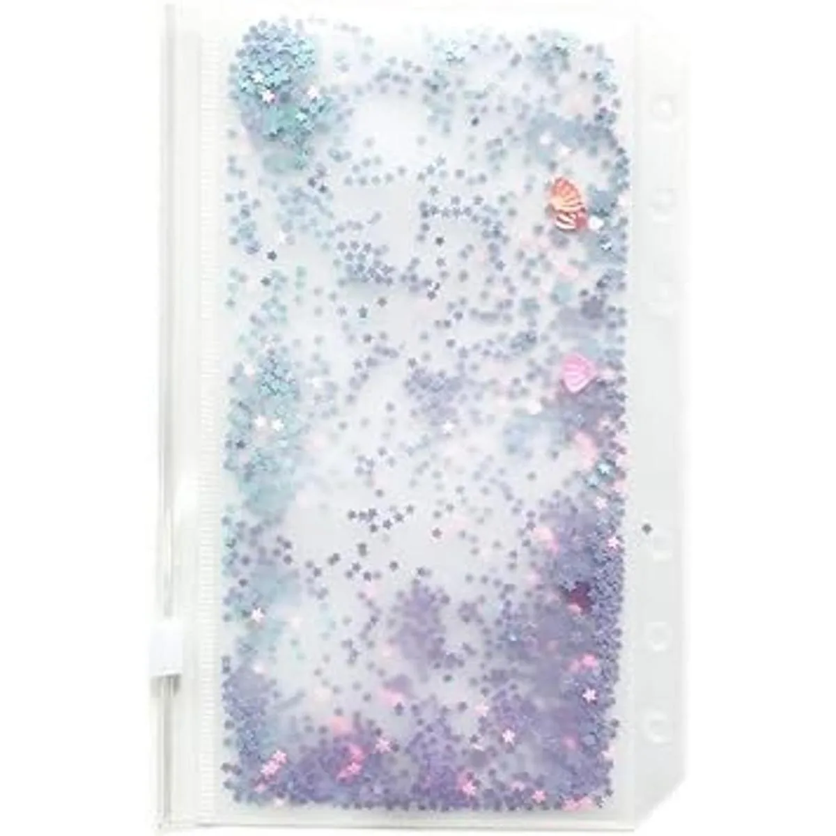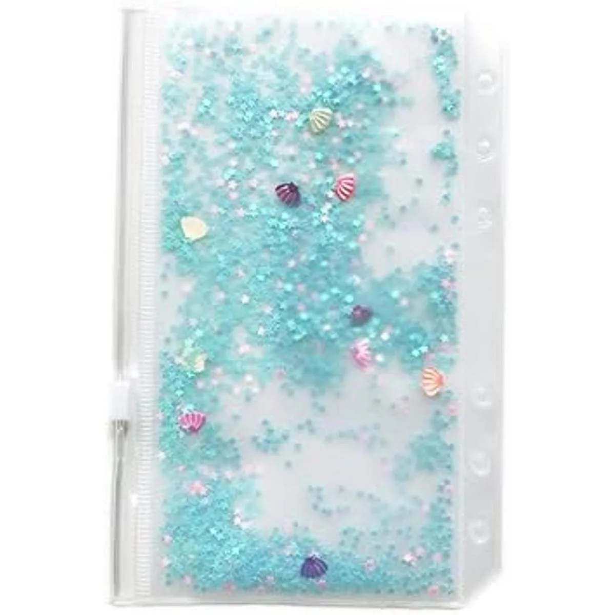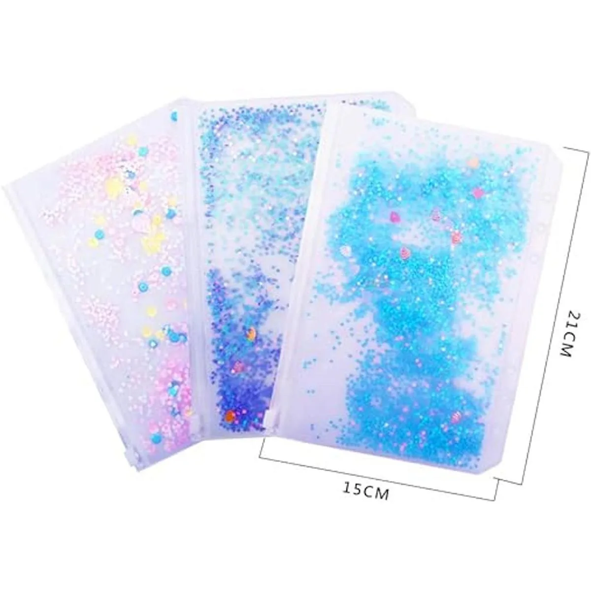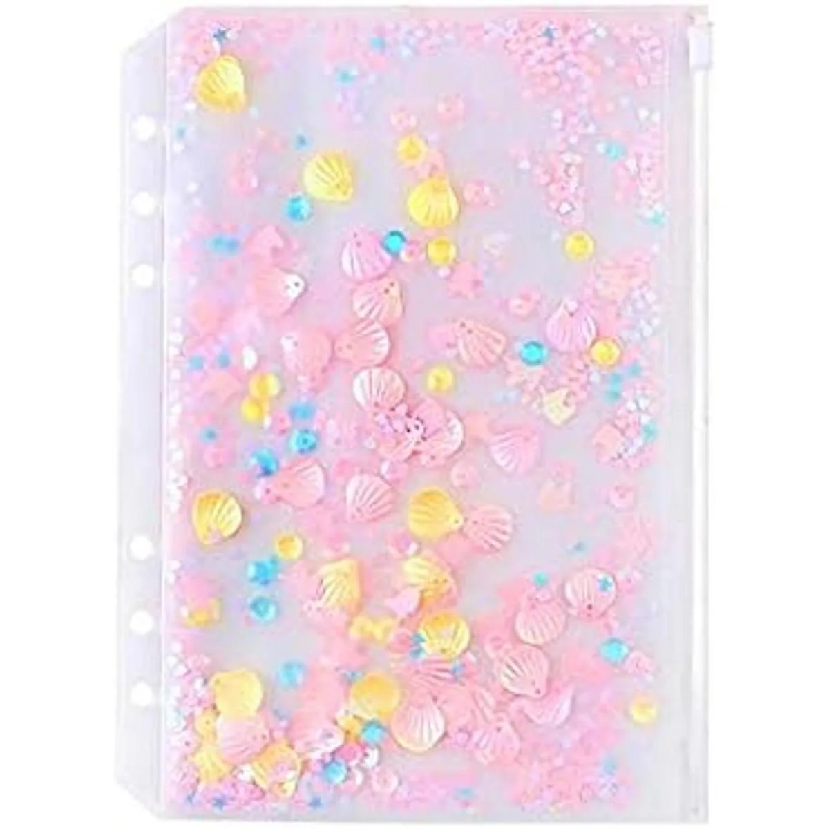 Chris.W 6 sobres de plástico con cierre de 6 agujeros A5 para cuaderno de 6 anillas, diseño de copos de purpurina, color rosa, azul y morado