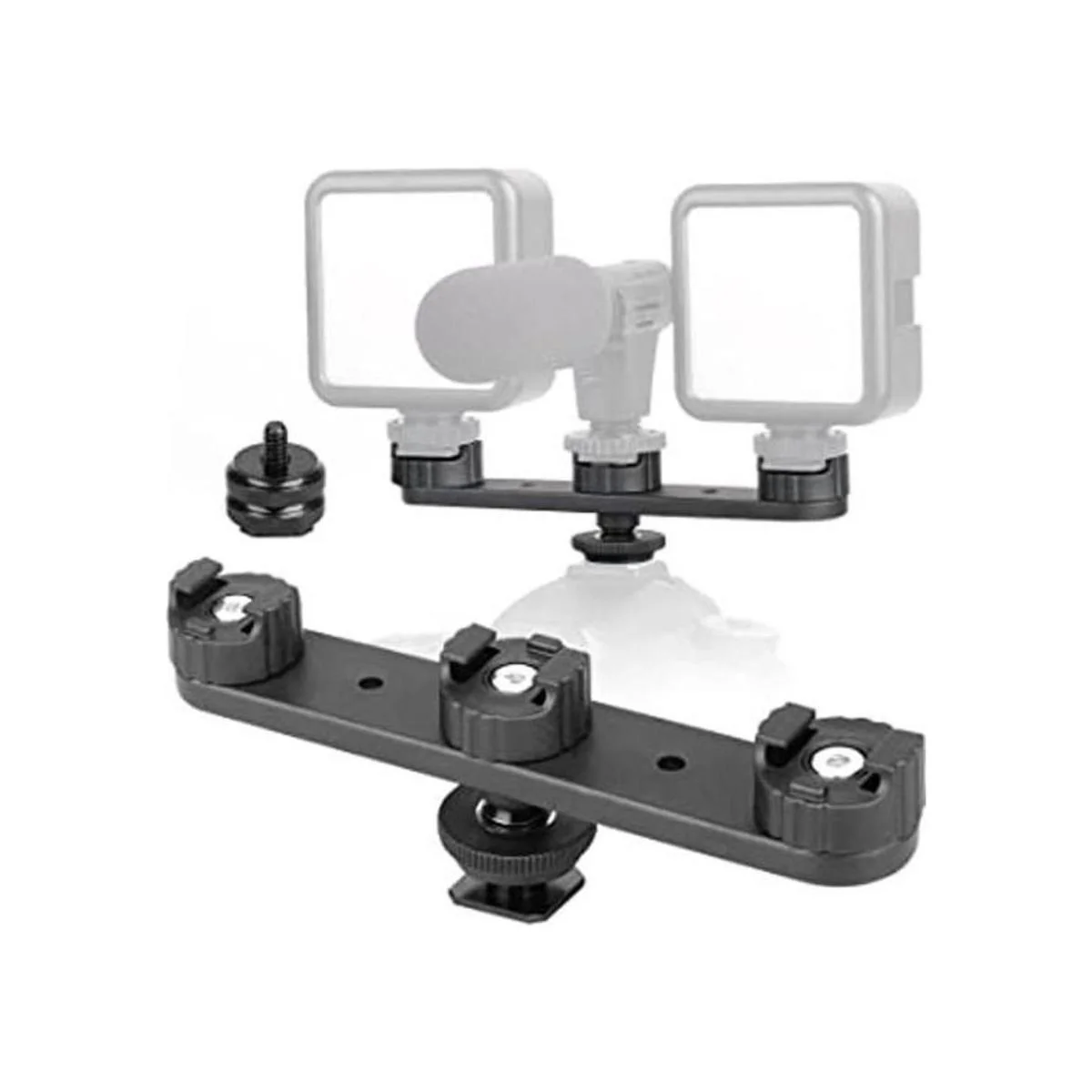 ChromLives Soporte de extensión triple para zapata fría con tornillo de 14 para trípodemicrófonoluz LED compatible con cámaras Canon Sony