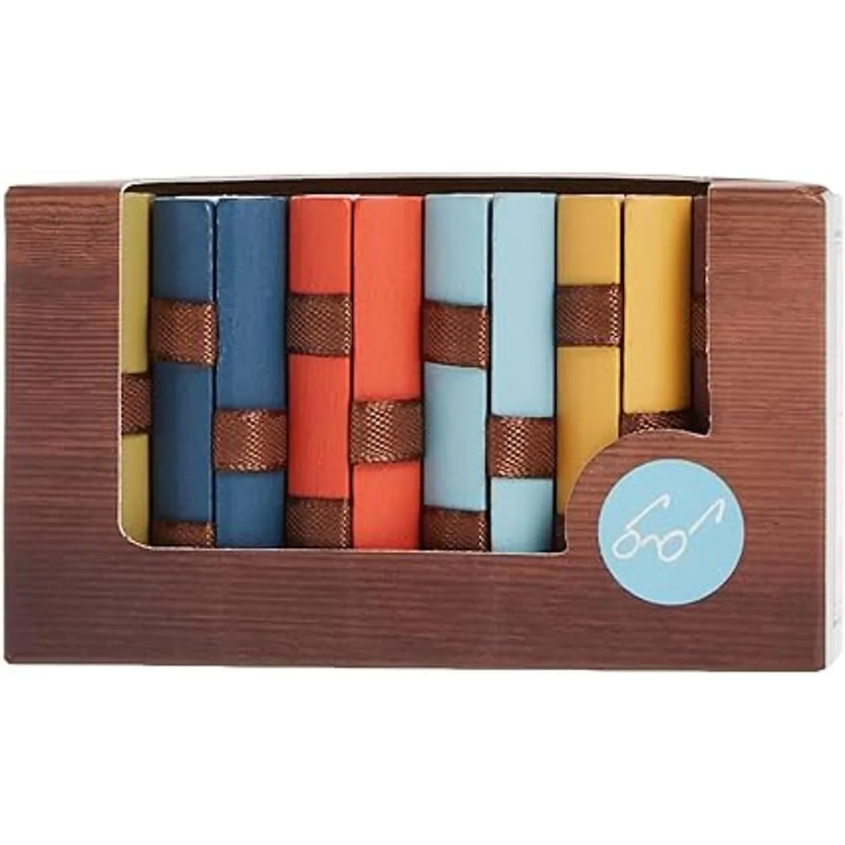 Escalera de madera pintada a mano de Jacob que parece una pila de libros encuadernados en cuero
