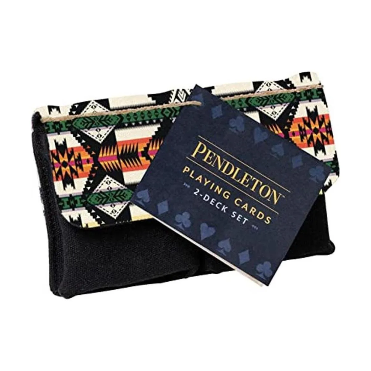Perfecto para viajes: con patrones clásicos Pendleton, este juego de dos barajas de cartas viene alojado en una práctica bolsa de lona, perfecta para llevar en la carretera.