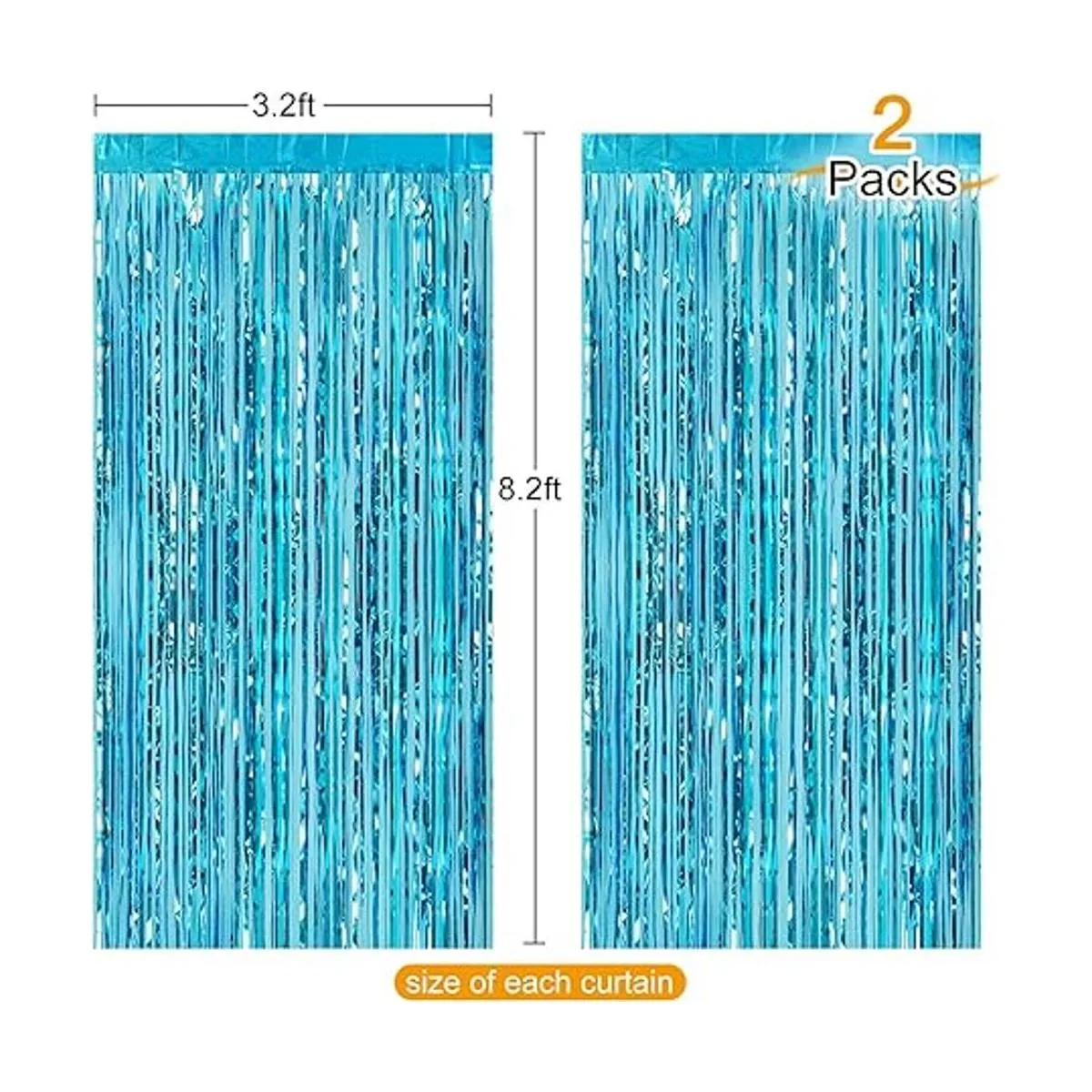 Cada juego incluye: 2 cortinas de oropel azul claro; tamaño grande ancho x caída: 3.3 x 8.2 ft, adecuado para decorar puertas y paredes, longitud suficiente para decorar tu fiesta