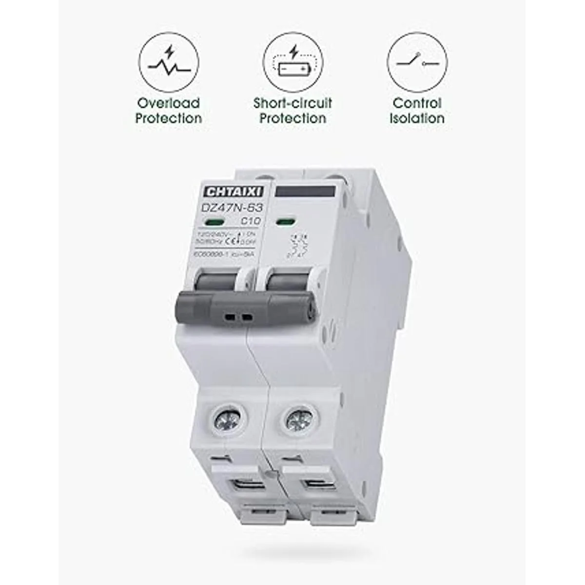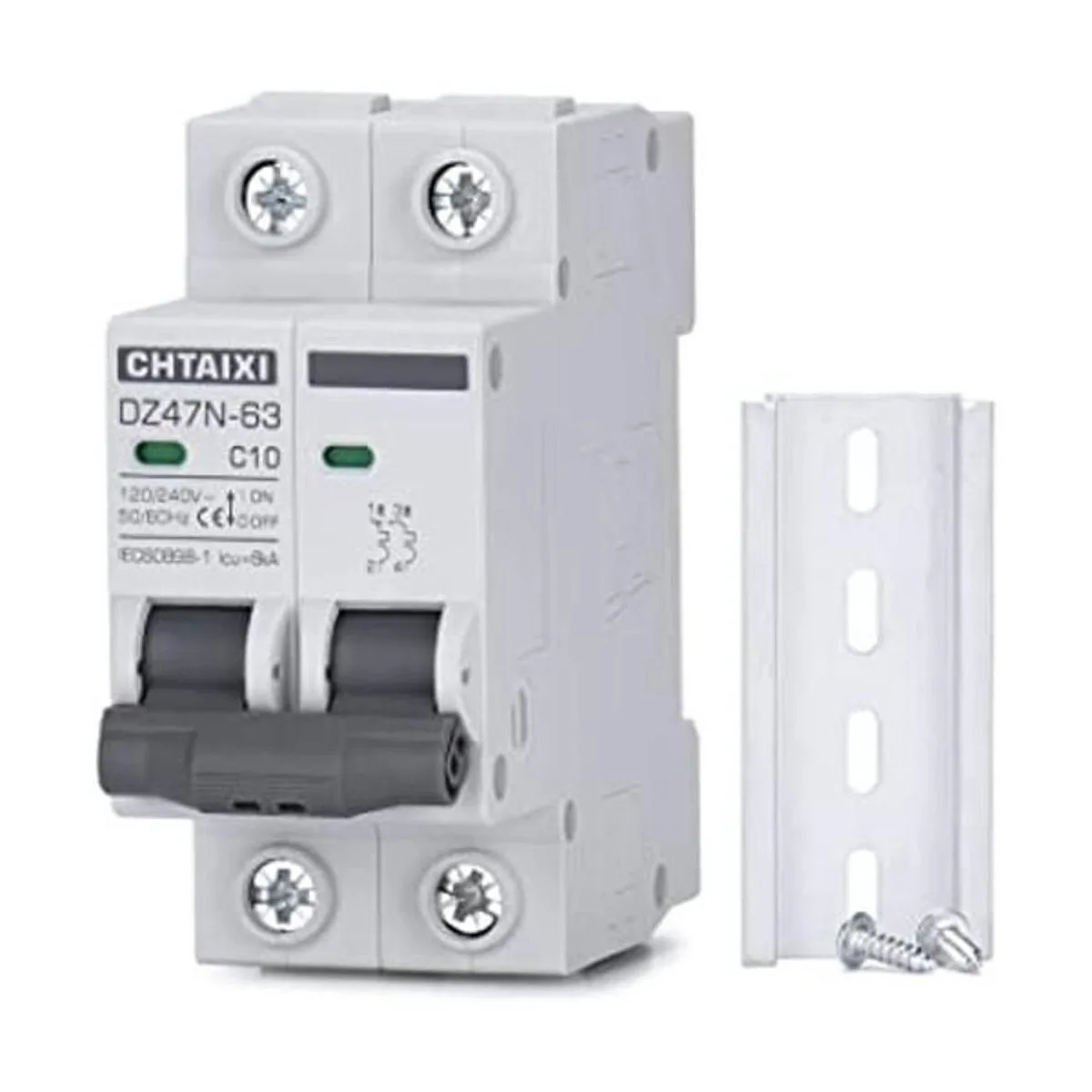 Chtaixi Disyuntor miniatura de CA, disyuntor de montaje en riel DIN de 10 amperios 120 V240 V de 2 polos, viaje magnético térmico, interruptor de desconexión de CA solar MCB C10