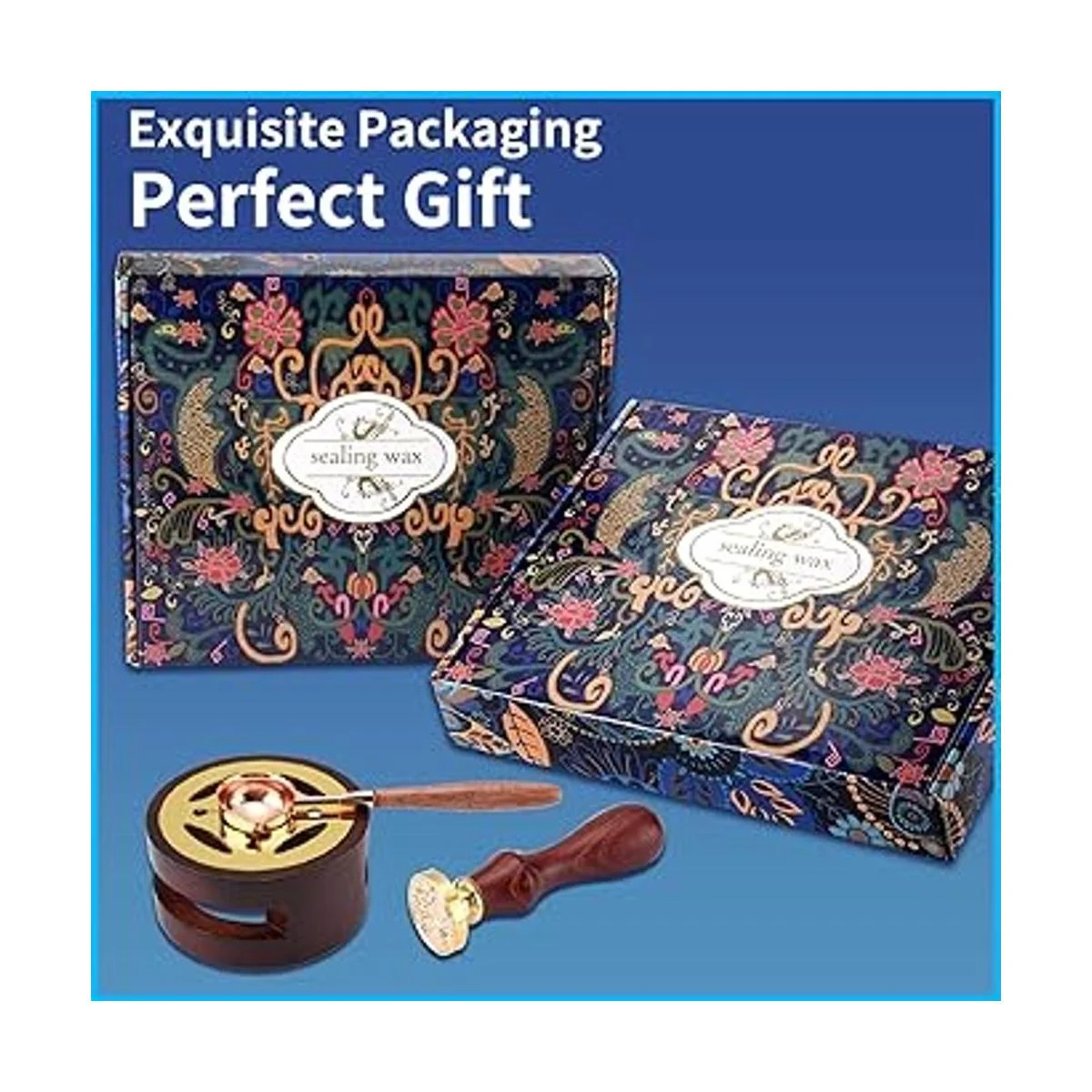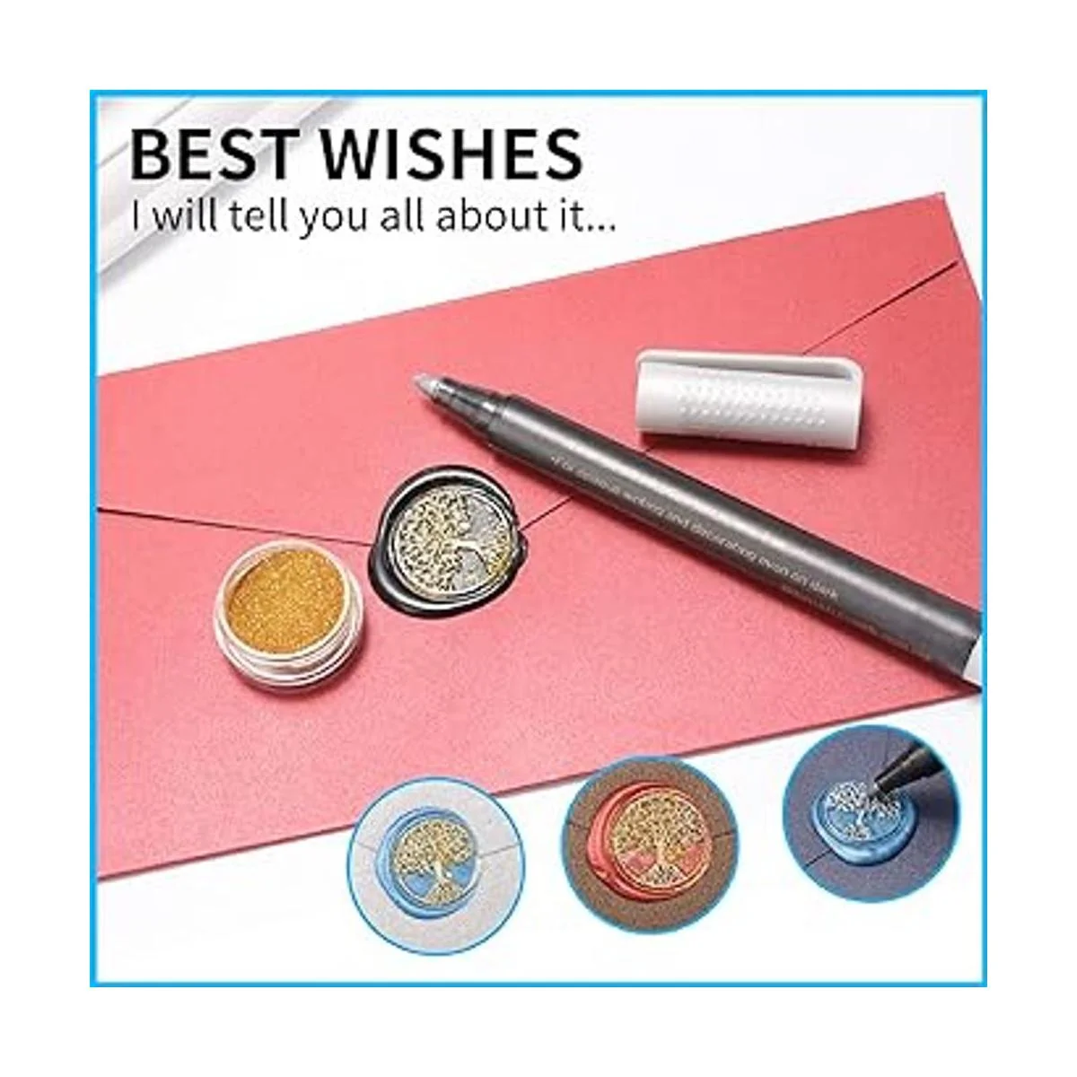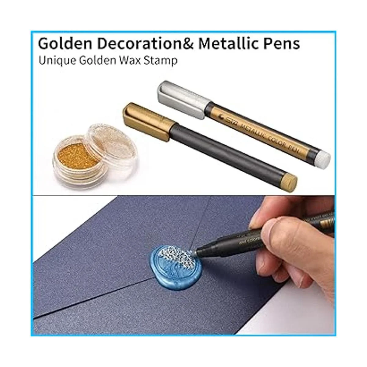 Decoración dorada. A diferencia del kit de sellado de cera normal, nuestro kit no solo incluye accesorios normales, sino que también tiene decoración dorada y 2 bolígrafos metálicos. Puedes hacer un sello de cera único y hermoso.