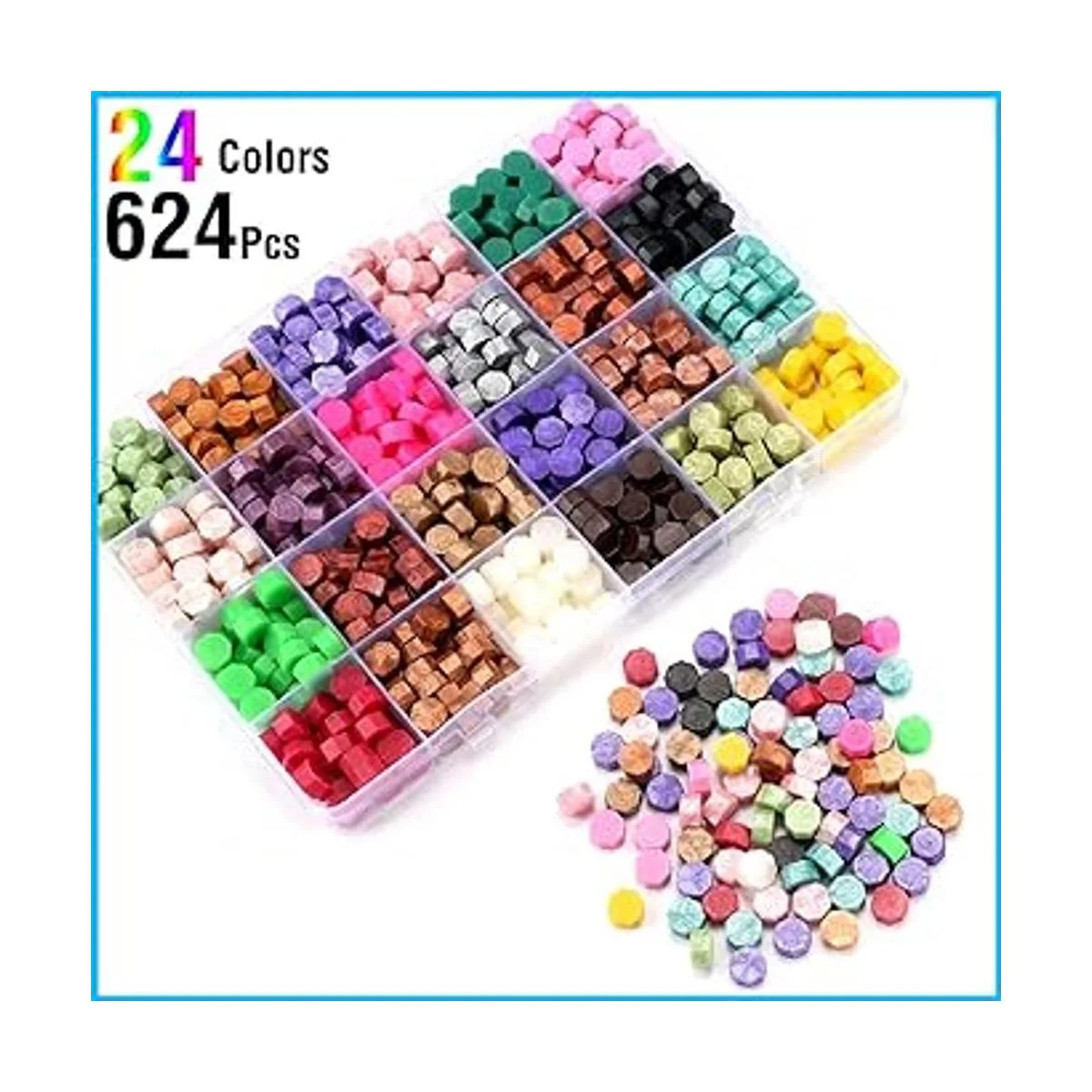 CHUHUAYUAN Kit de sello de cera con caja de regalo, 24 colores y 624 cuentas de sellado de cera con sello de cera, calentador de cera de sellado, bolígrafo metálico de sello de cera y sobre, kit de sellado de cera para regalo y decoración