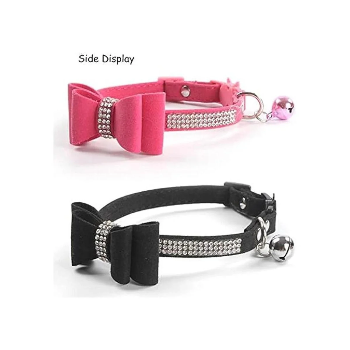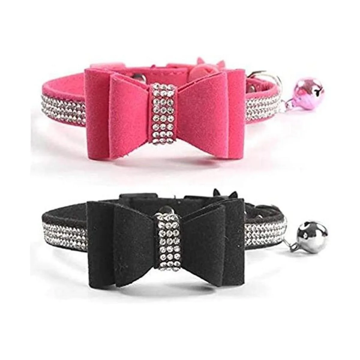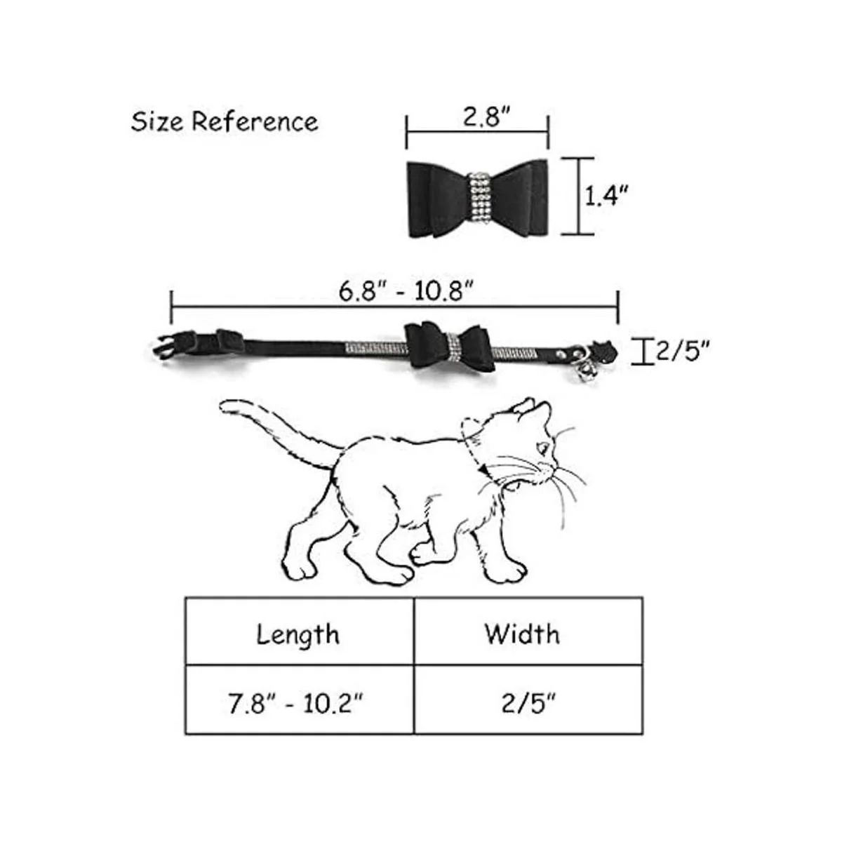 CHUKCHI Paquete de 2 collares de gato con diamantes brillantes con bonito lazo y campana para gatitos y algunos cachorros, ajustables de 7.8 a 10.5 pulgadas