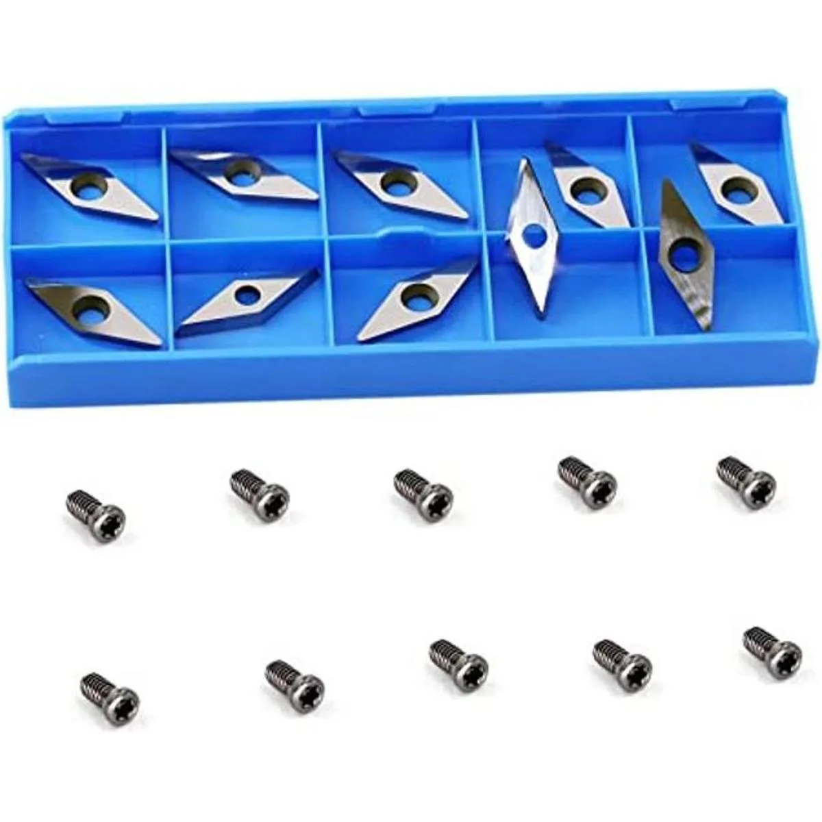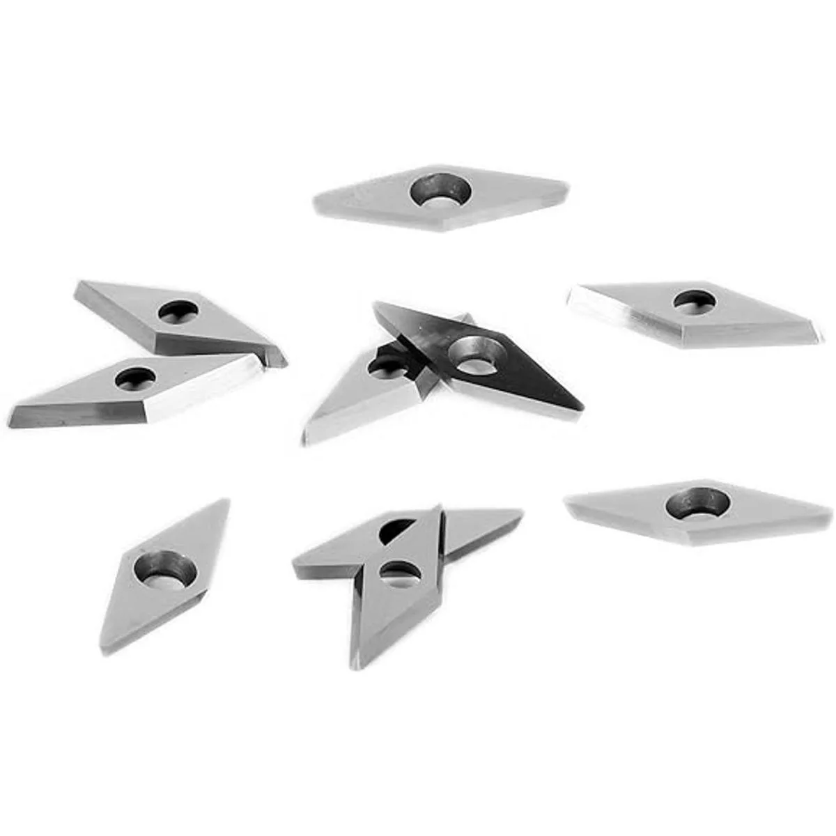 Ci4 Cuchillos de repuesto de carburo de tungsteno de diamante con punta de radio para bricolaje, kit de herramientas de torneado de madera o accesorios de máquinas de carpintería, 10 unidades