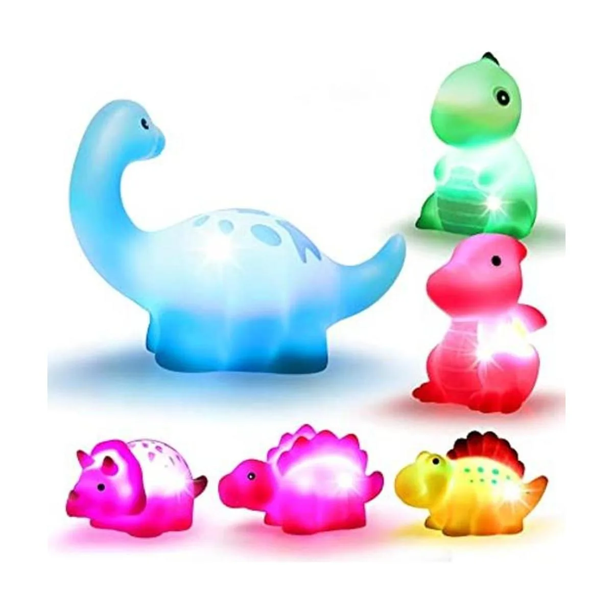 Cibolar Juguetes de baño de dinosaurio iluminados, 6 paquetes de juguetes flotantes de baño para bebés y niños pequeños en cumpleaños, Pascua, Navidad, ducha, piscina, juguetes de baño, niños y niñas, preescolar, bañera de baño