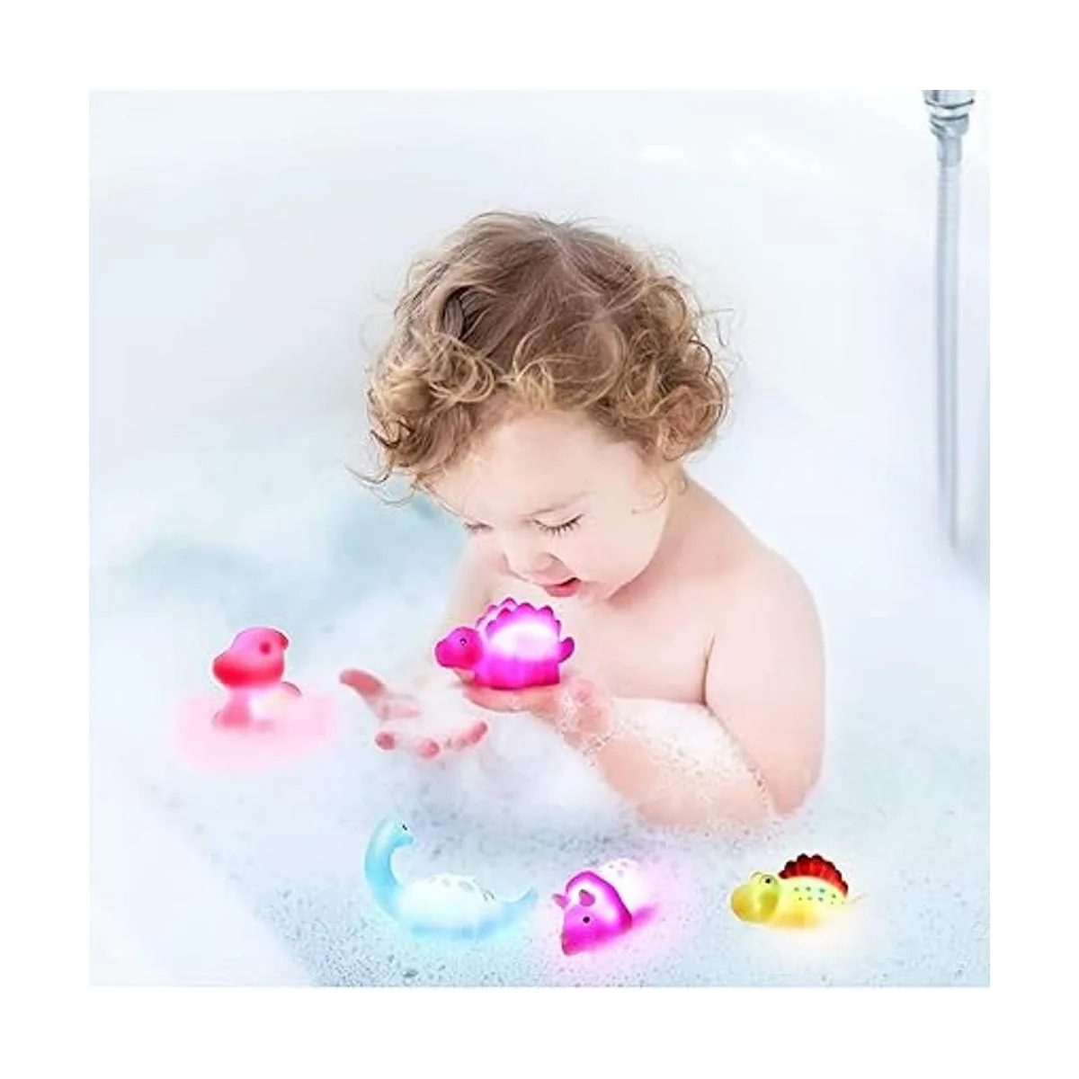 Juguetes de baño de dinosaurio iluminados: cuando se ponen en agua, estos bonitos juguetes de baño de dinosaurio se iluminan muy bien y brillantemente en un aspecto bonito que llamará fácilmente la atención de tus hijos. Los niños que no aman el baño, se enamoran de él.