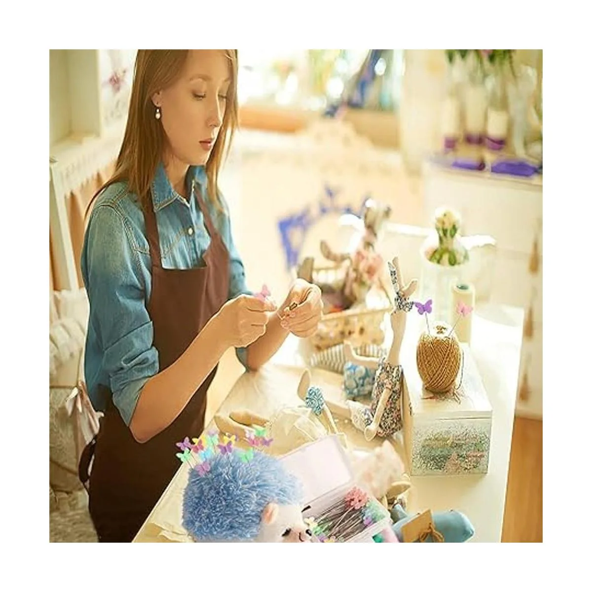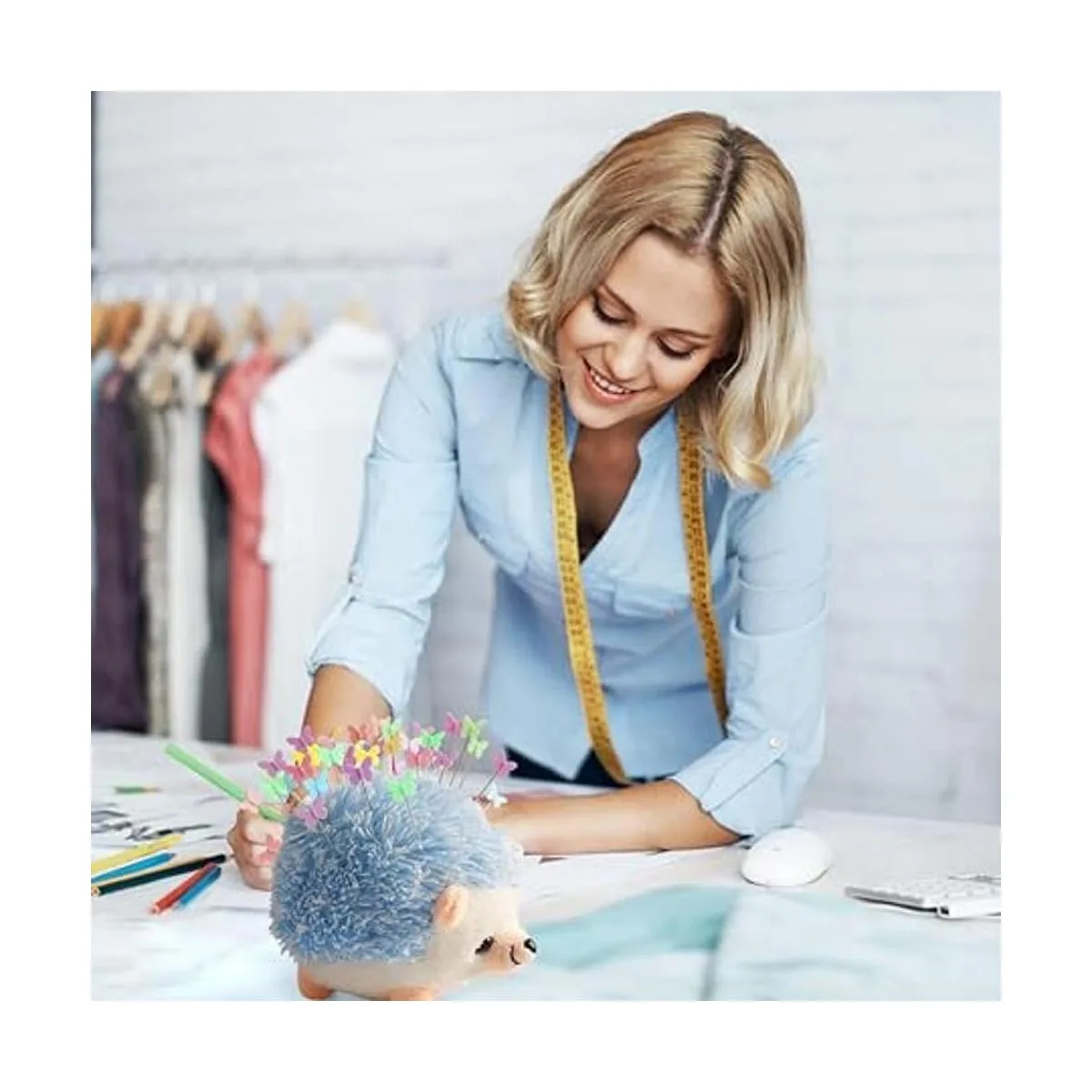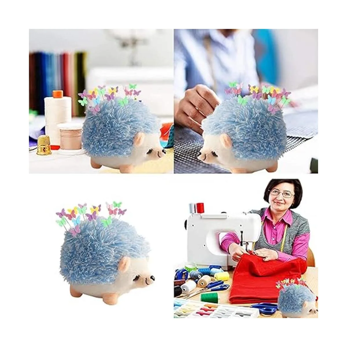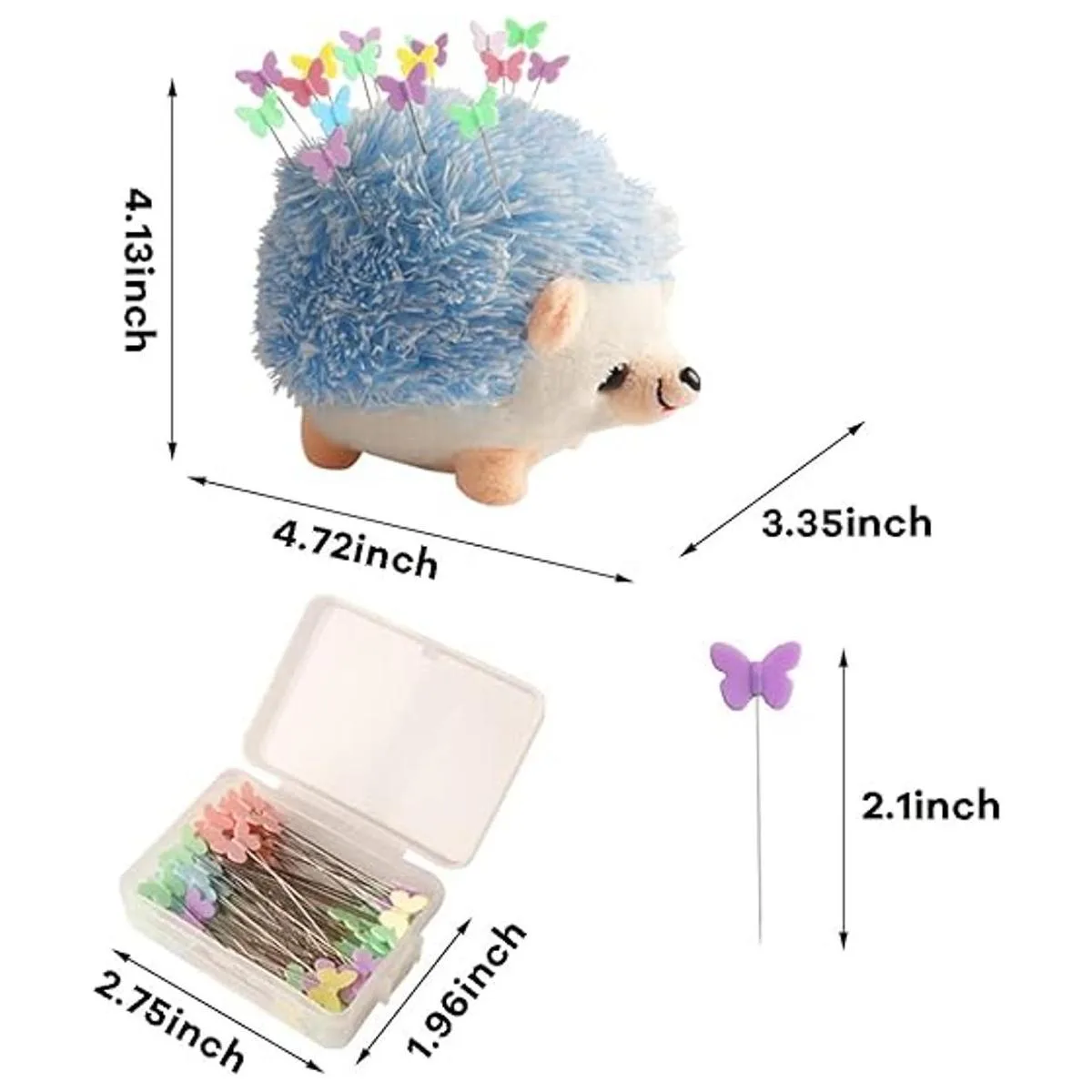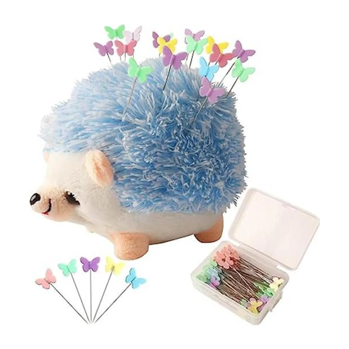 CICILIAYA Cojín con forma de erizo, bonito kit de costura, bonito pasador, accesorios de costura, suministros con 100 pines de mariposa de colores para acolchar, manualidades, retazos