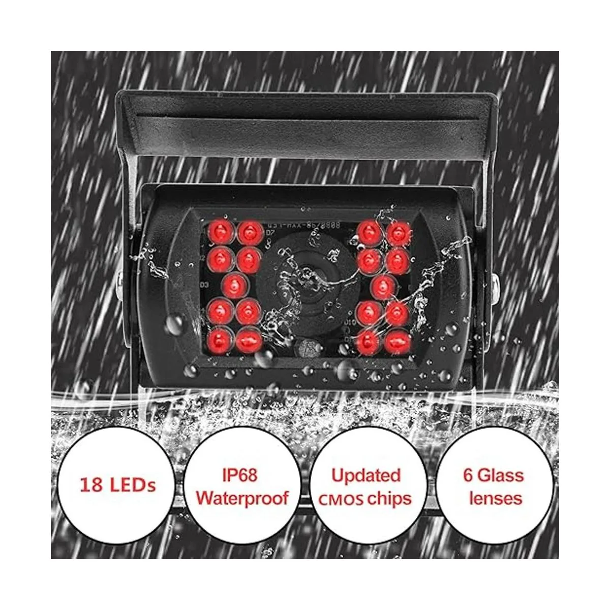 Súper visión nocturna: con 18 luces LED superbrillantes, visión nocturna más fuerte que la cámara LED normal o la cámara normal. Incluso por la noche, la cámara proporciona una visión muy clara para ayudarte a ver más claramente en carretera oscura o estacionamiento subterráneo.