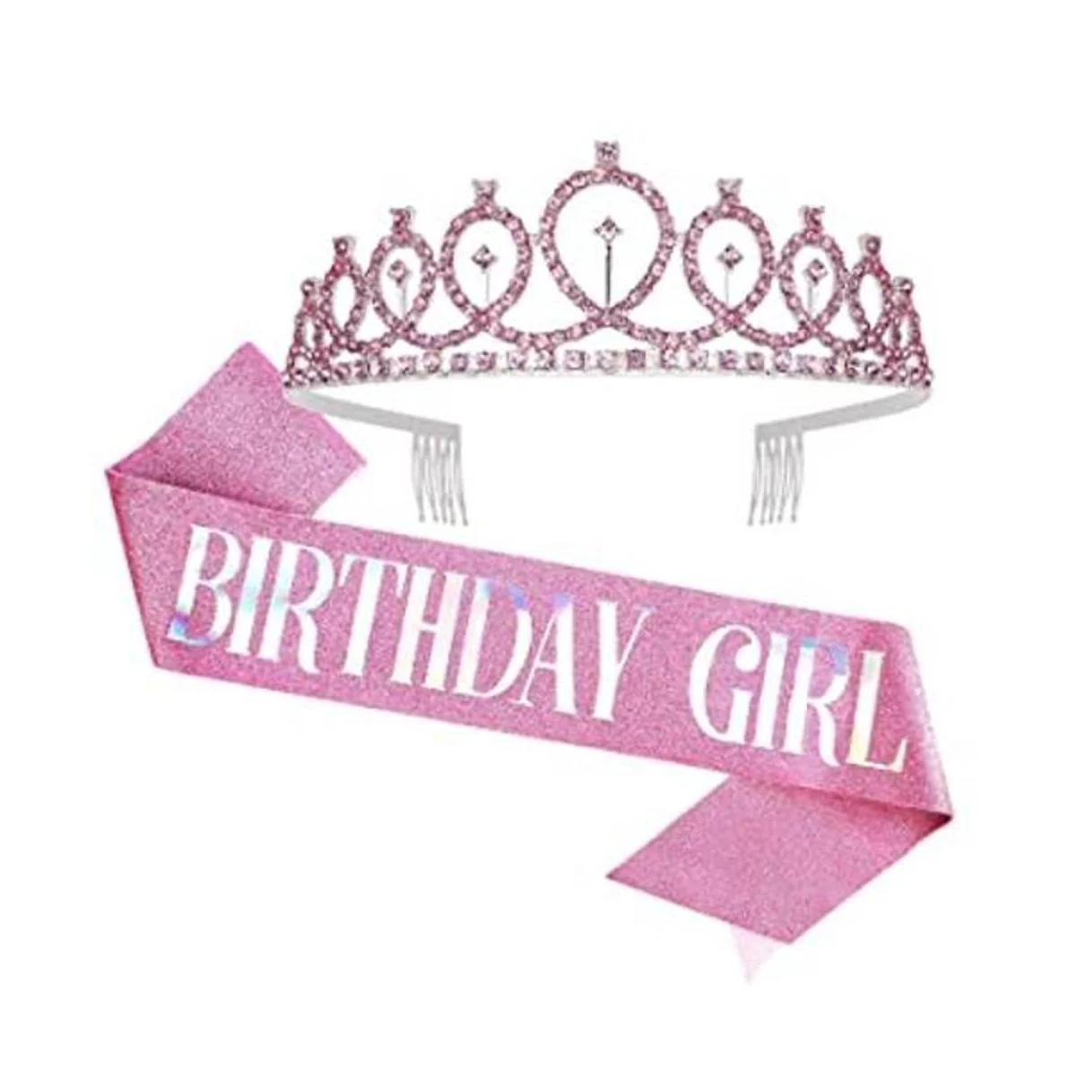el juego perfecto de decoraciones de cumpleaños: banda birthday girl tiara de diamantes de imitación.