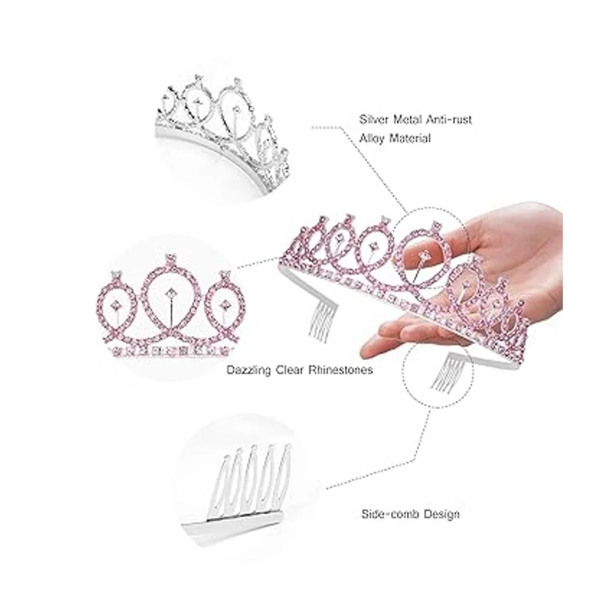 CIEHER Corona de cumpleaños, kit de tiara de cumpleaños y diamantes de imitación, corona rosa, tiaras y coronas para mujeres y niñas, suministros de disfraces de fiesta de cumpleaños, regalo de fiesta de cumpleaños
