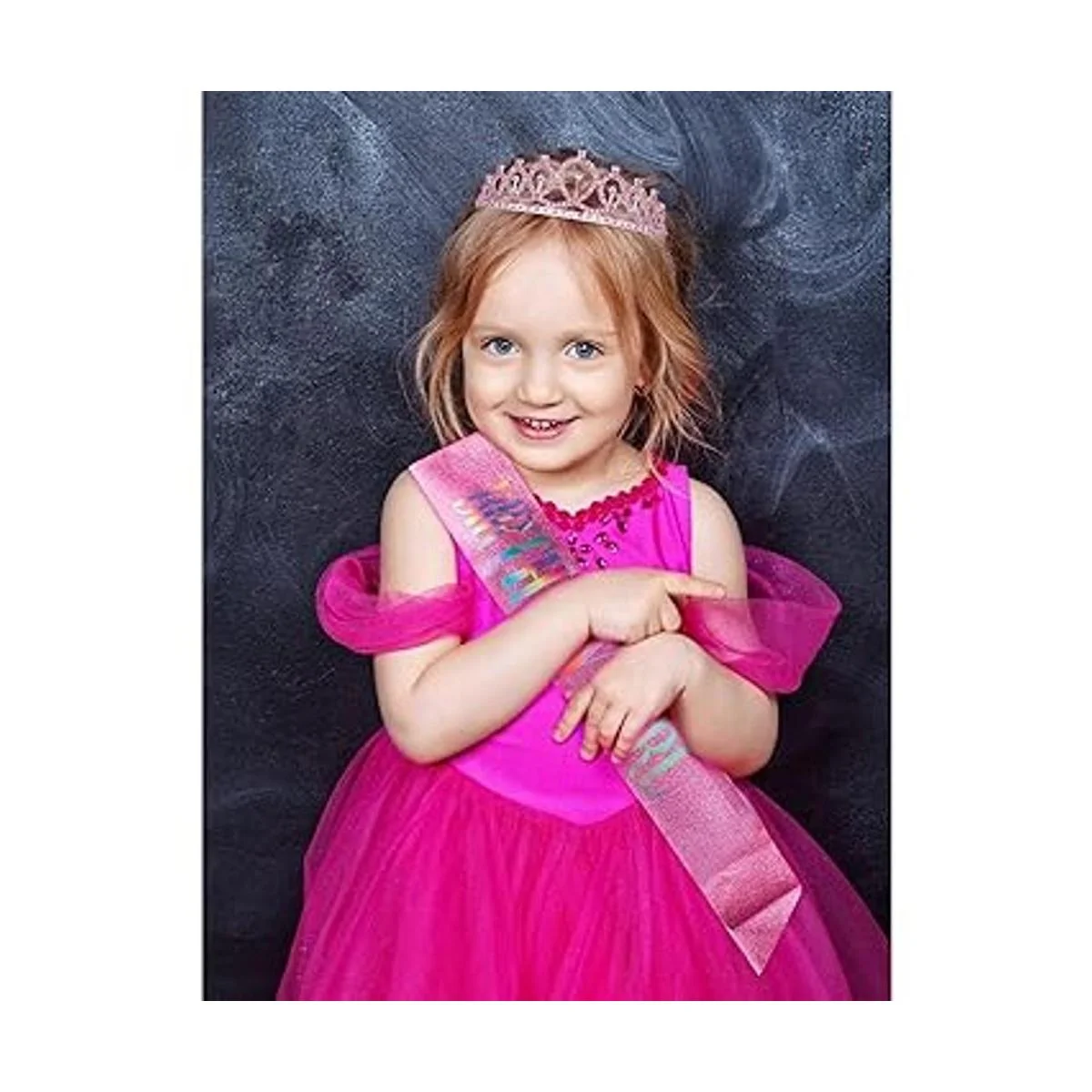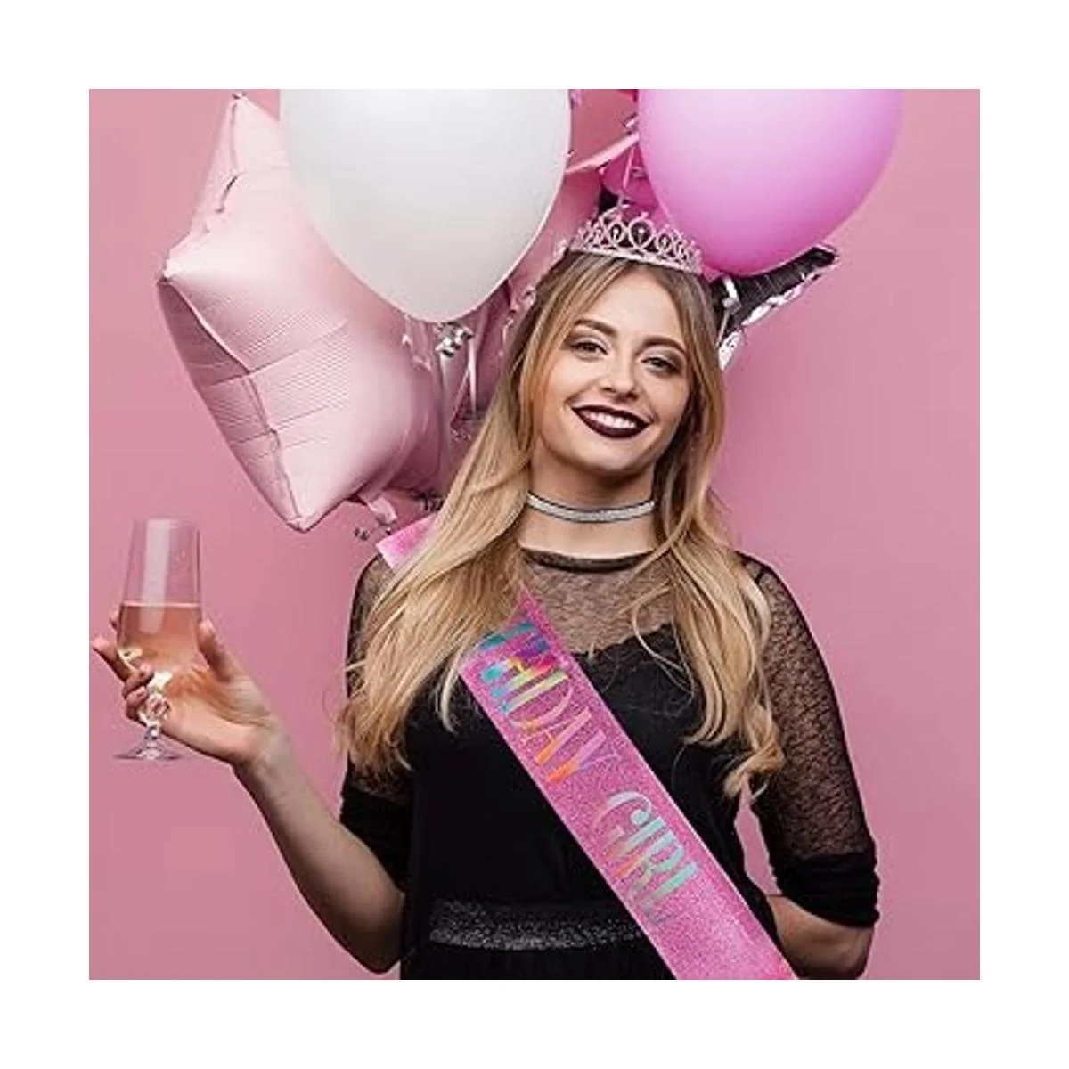 banda de cumpleaños para niñas. hecho de tela suave con purpurina con lámina de estampado prensada en caliente que complementará cualquier atuendo y lo suficientemente resistente como para durar día a noche. banda rosa con purpurina letras plateadas que se ven muy bien en las fotos. es perfecta para aquellos que se obsesionan con la foto perfecta para