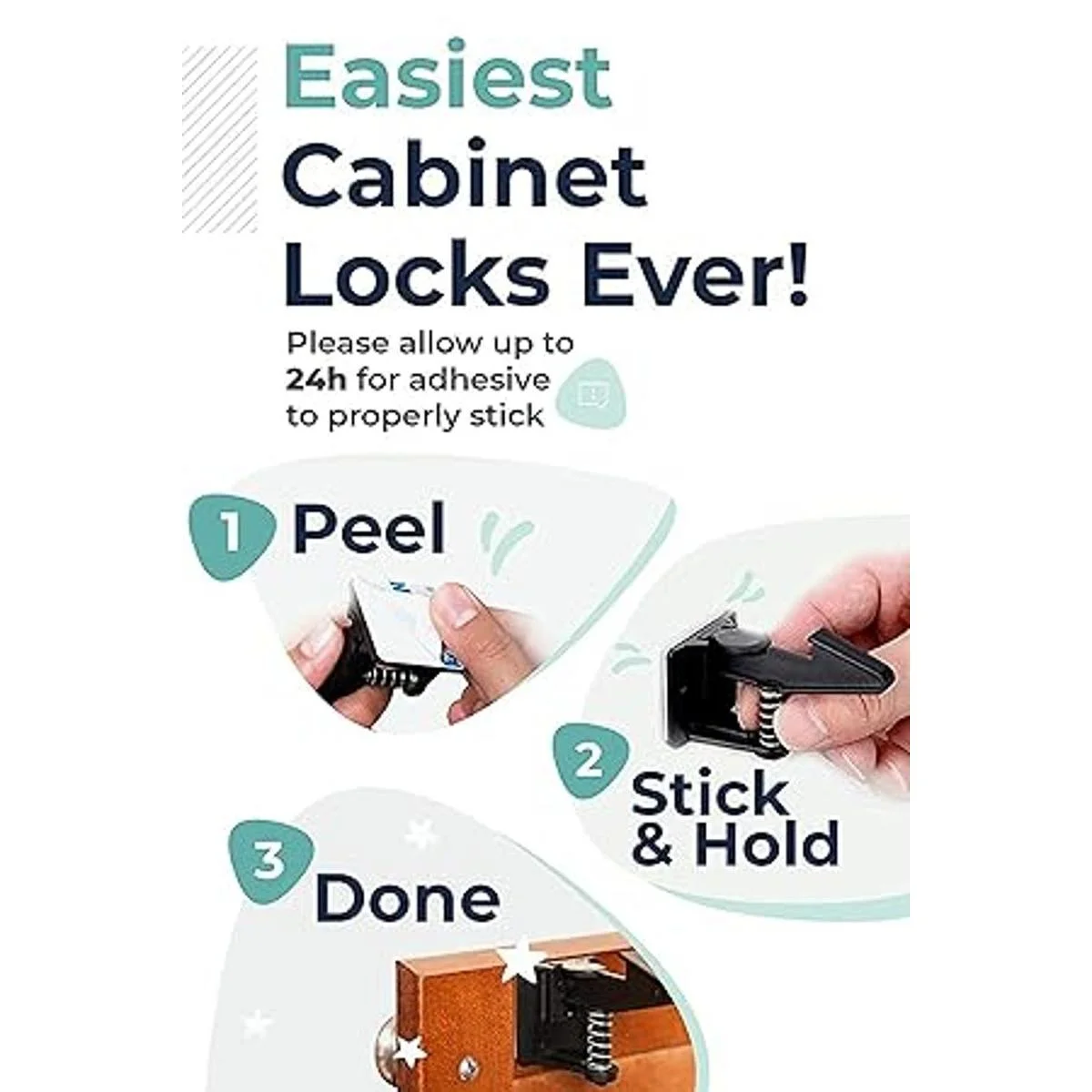 Simple Child Safety Locks Just Peel and Stick for Secured Cabinets and Drawers without Drilling Holes in your Cabinets