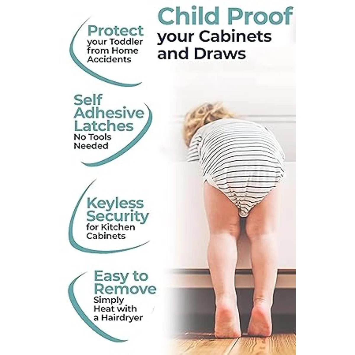 Designed to keep your toddler safe from harm, these self adhesive child proof cabinet latches make baby proofing cabinets simple. Just peel off the backing and the super strong 3M adhesive fixes these child locks to cabinets and drawers in seconds.
