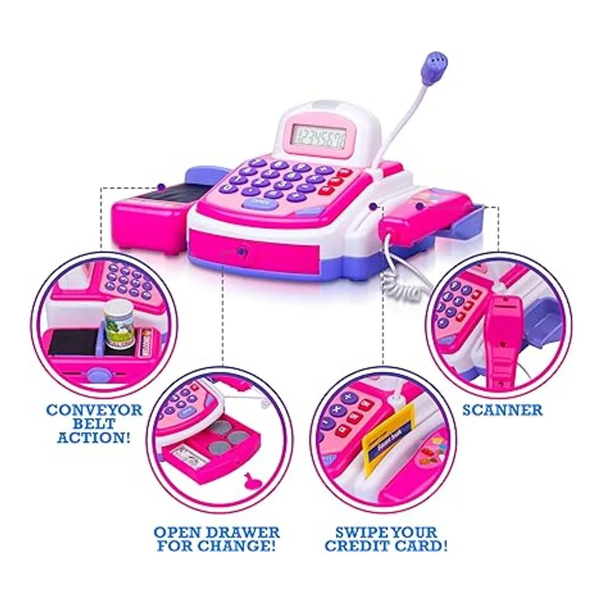 CifToys Juego de caja registradora de juguete de cajero Juego de juego de simulación para niños Juguete colorido de supermercado infantil con micrófono y sonidos, regalo ideal para niños pequeños y preescolares