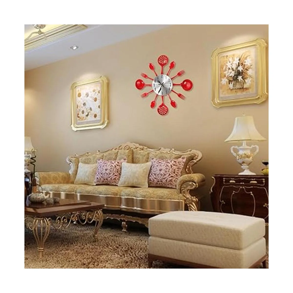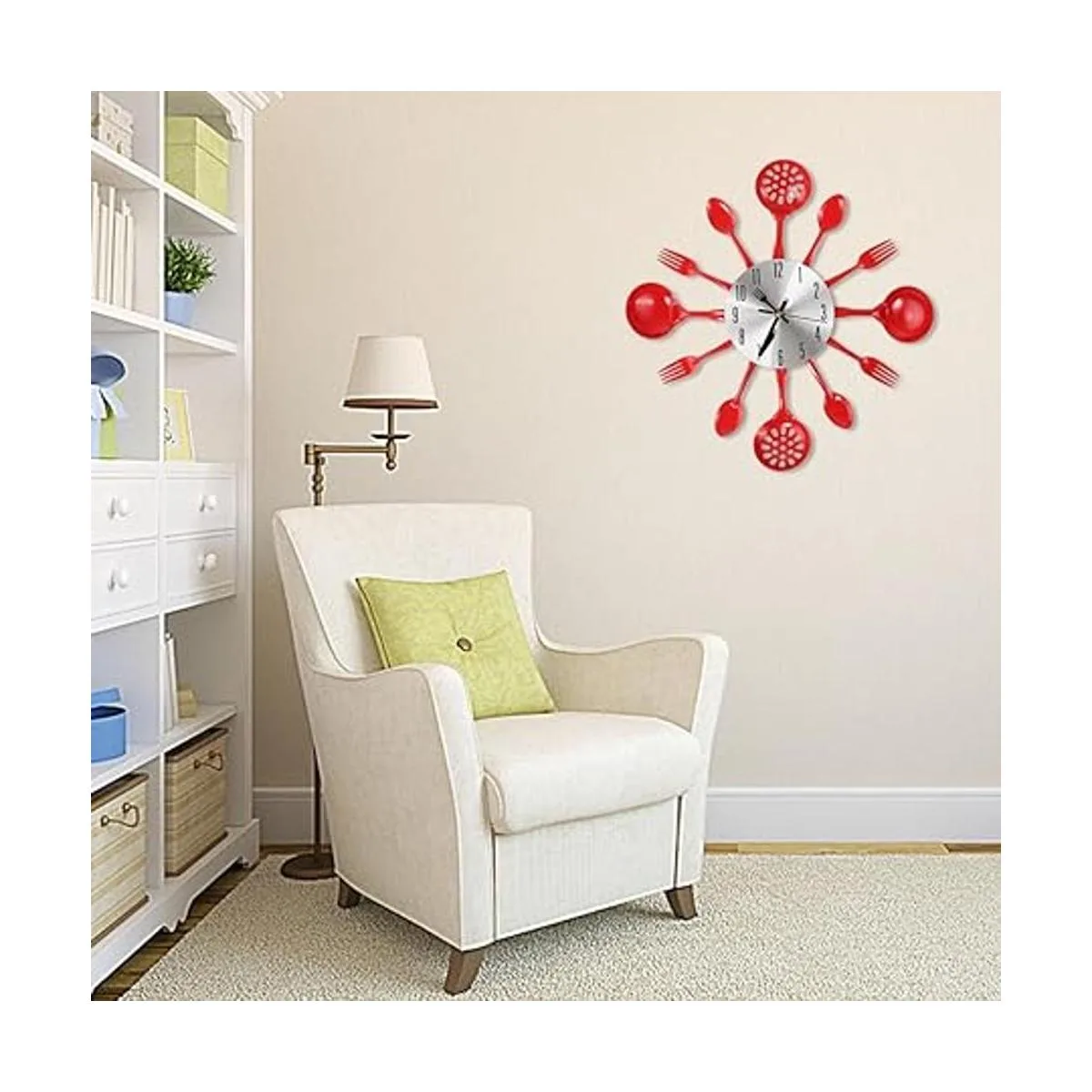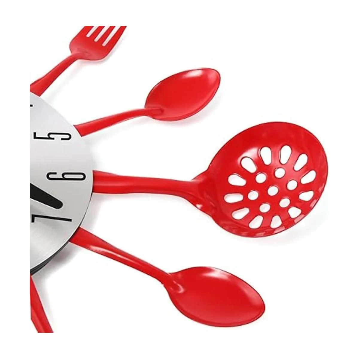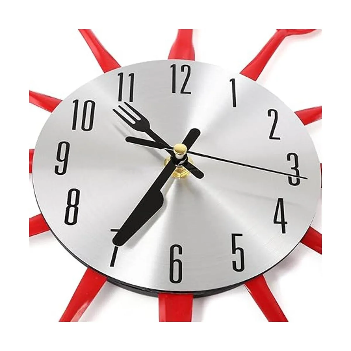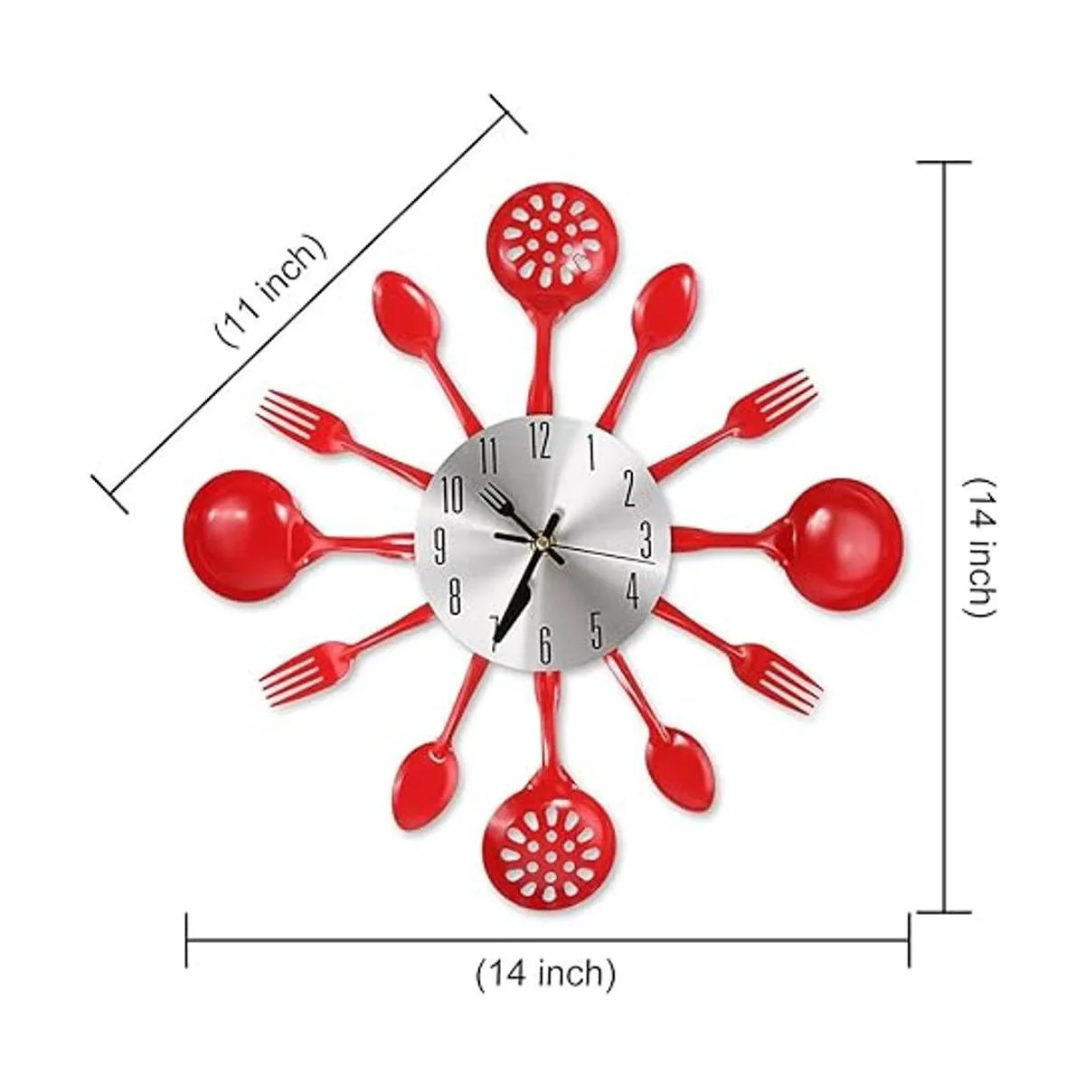 Cigera Reloj de pared de cubiertos de cocina de 14 pulgadas con tenedores y cucharas para decoración del hogar, rojo
