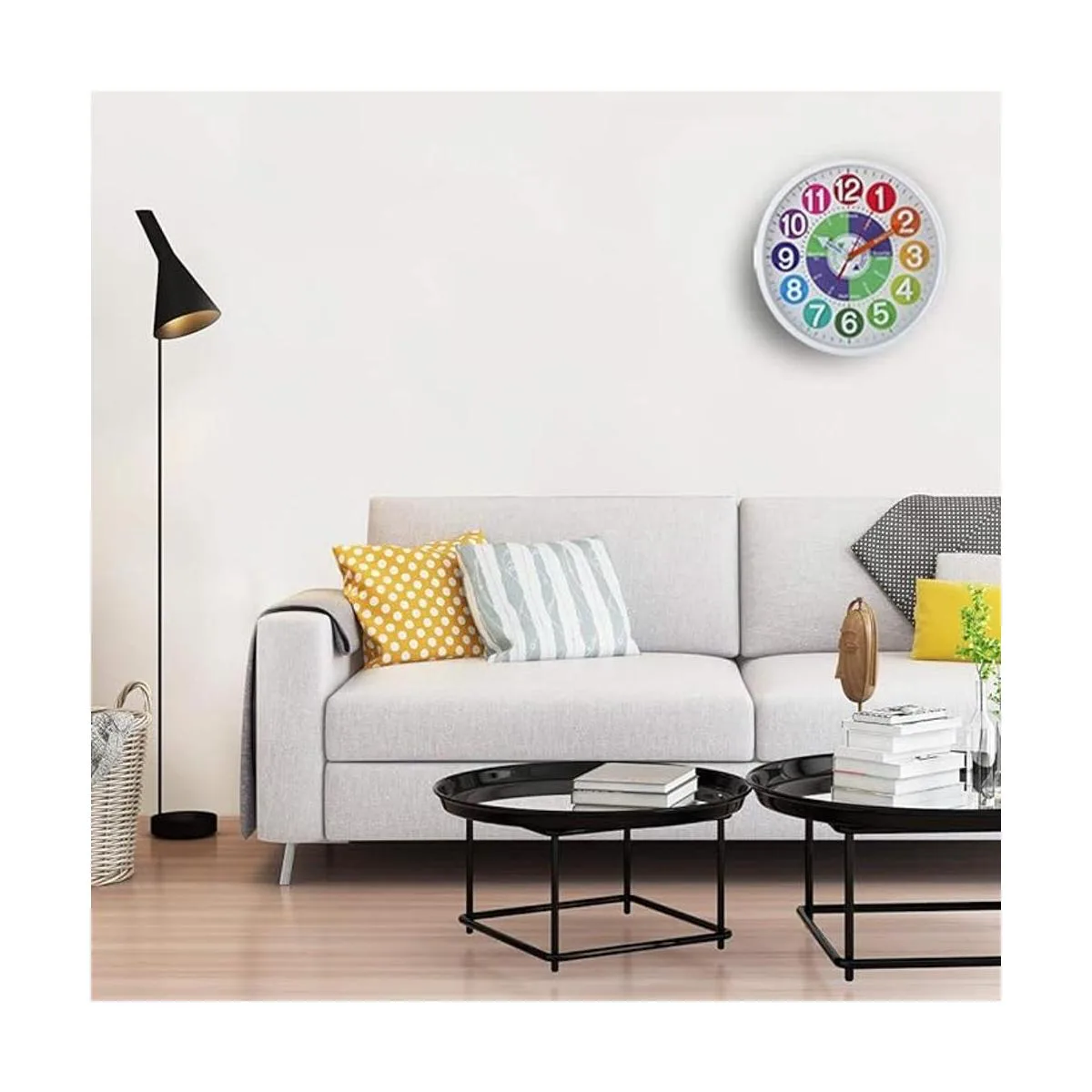 Tiempo fácil de leer a distancia lejana. Este reloj de pared viene con esfera blanca de 12 pulgadas, números 3D marcados de diferentes colores y gafas transparentes, por lo que puedes leer y decir la hora a gran distancia.
