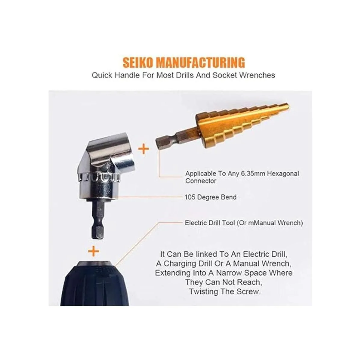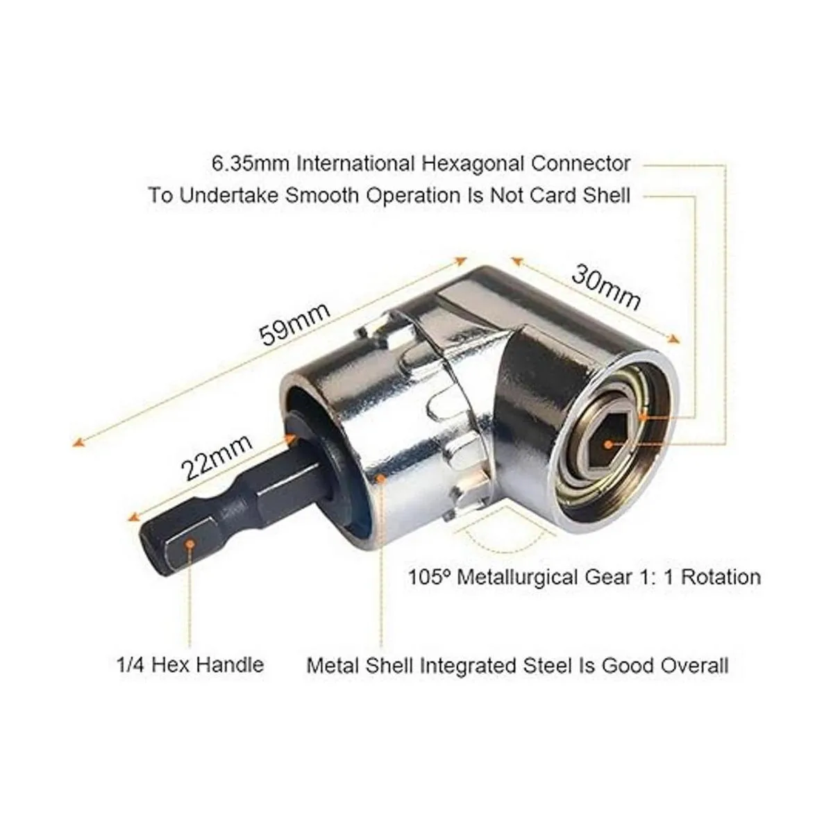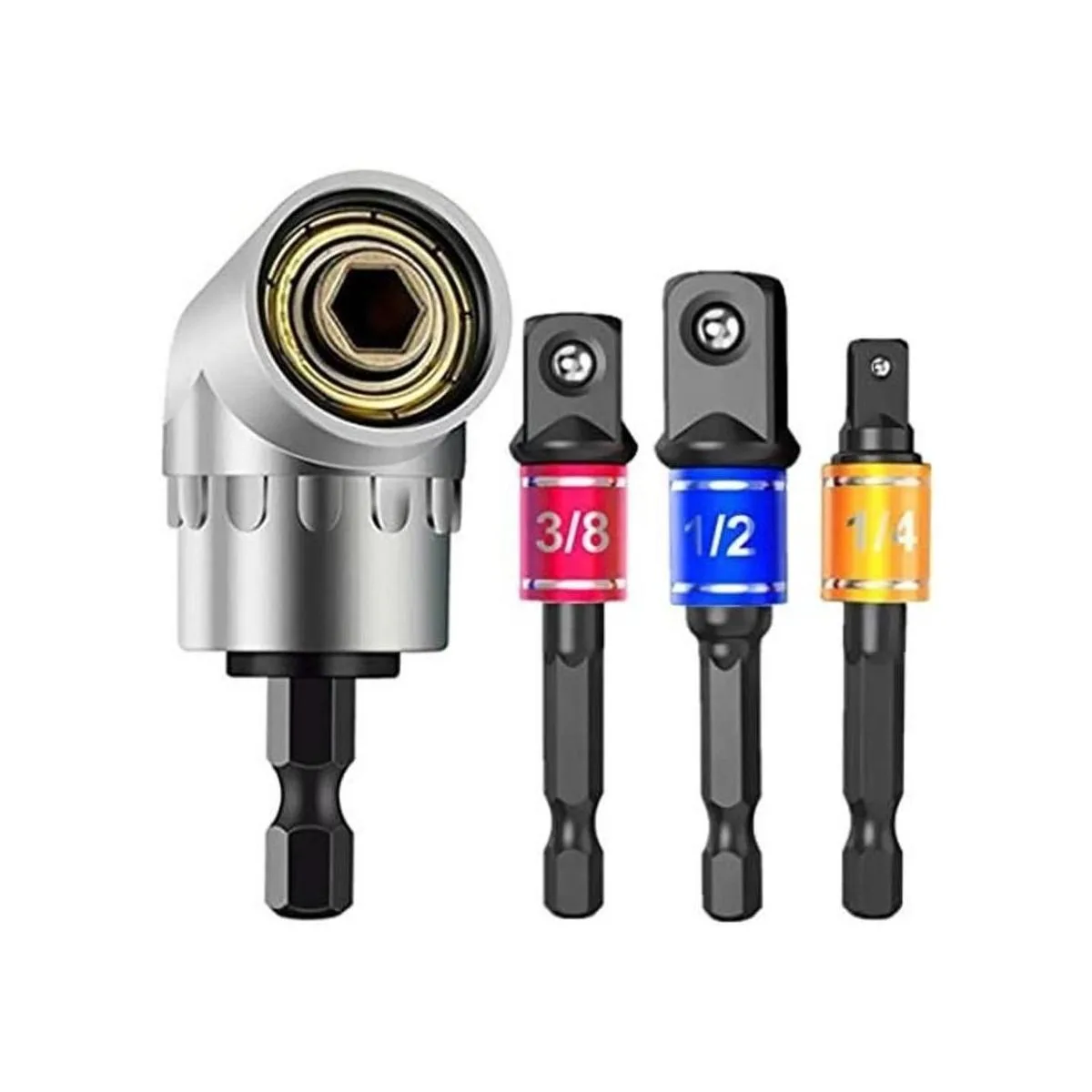 CIGOTU Juego de extensiones de adaptador de llaves de mano eléctricas de grado impacto, 3 piezas de 14 38 12 pulgadas de vástago hexagonal destornillador de extensión de destornillador de ángulo recto de 105 grados
