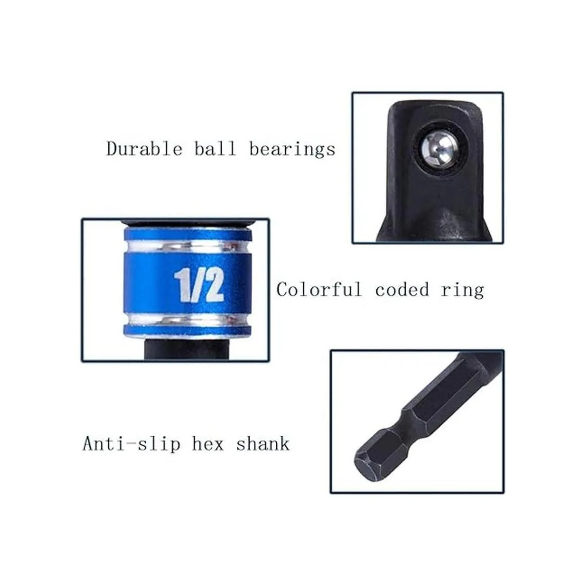 Propósito de 3 piezas : este juego de adaptadores está diseñado para proporcionar una extensión bloqueada de forma segura a tu herramienta existente. Proporciona una longitud adicional para llegar a una multitud de espacios difíciles de alcanzar. El bloqueo de bola de resorte garantiza un ajuste apretado en la cabeza del conductor para evitar resbalones durante el uso. Específicamente mecanizado para caber de forma segura en un destornillador de mano, taladro o llave de impacto.