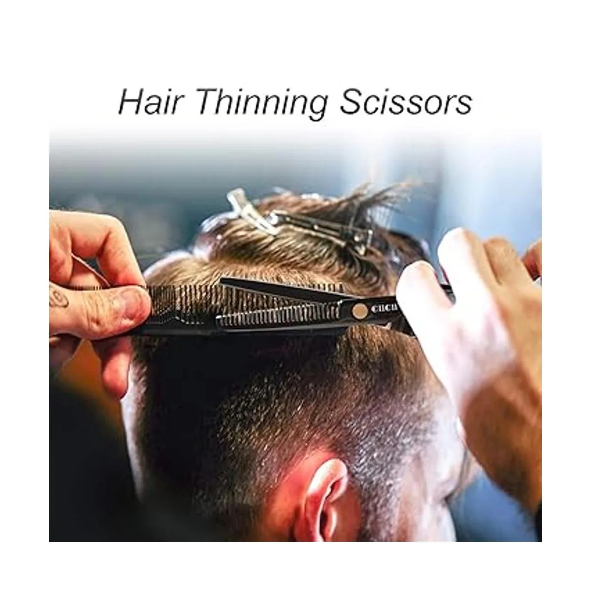 tijeras de material premium: las tijeras de pelo CIICII están hechas de titanio chapado en negro 440C acero inoxidable japonés, todos los procesos de fabricación de acero Calidad duradera y tacto cómodo; Estas tijeras de corte de pelo están pulidas a mano, la línea de la hoja es uniforme y suave para hacer las tijeras afiladas.