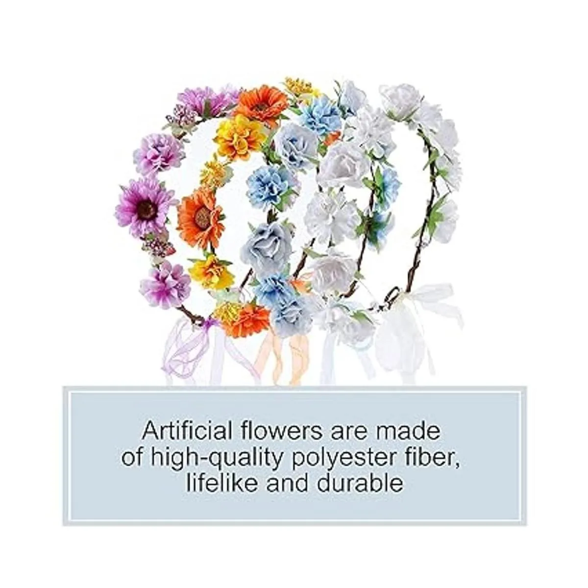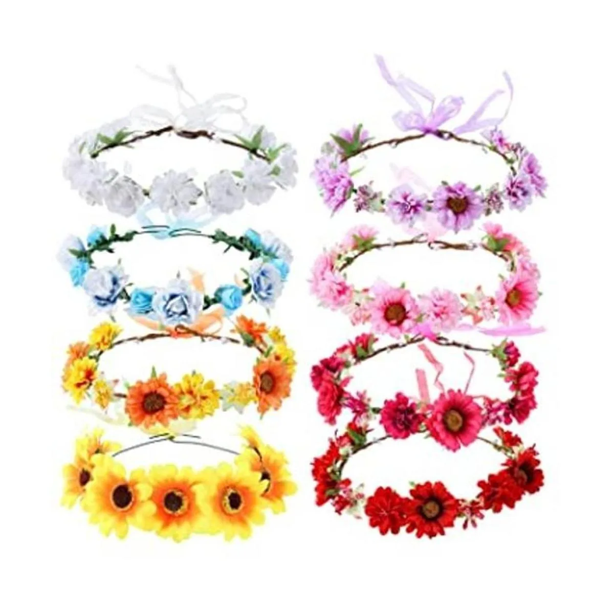 Cinaci Paquete de 8 diademas bohemias hawaianas con diseño de girasol y margaritas de rosas y flores hechas a mano, ajustables, para bodas, fiestas, accesorios para mujeres, novias, niñas, adolescentes