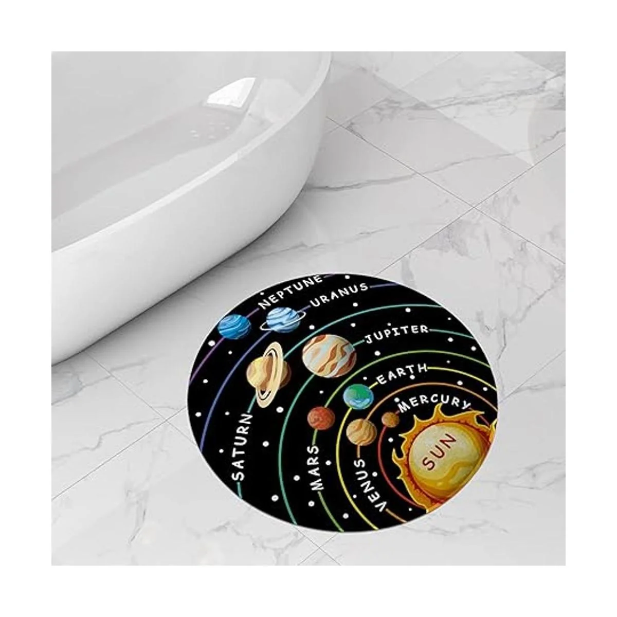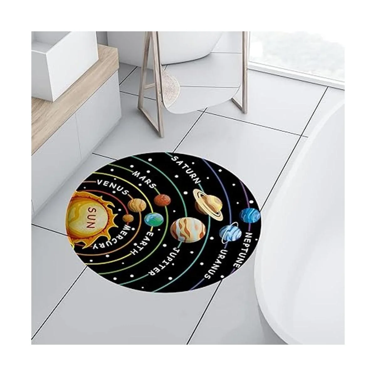 Cinbloo Alfombra redonda con sistema solar para niños, alfombra de galaxia para el espacio exterior, planeta de aprendizaje educativo, antideslizante, alfombra de baño de lana suave para niños, guardería, dormitorio, sala de juegos, aula negro, 36 x 36 pulgadas