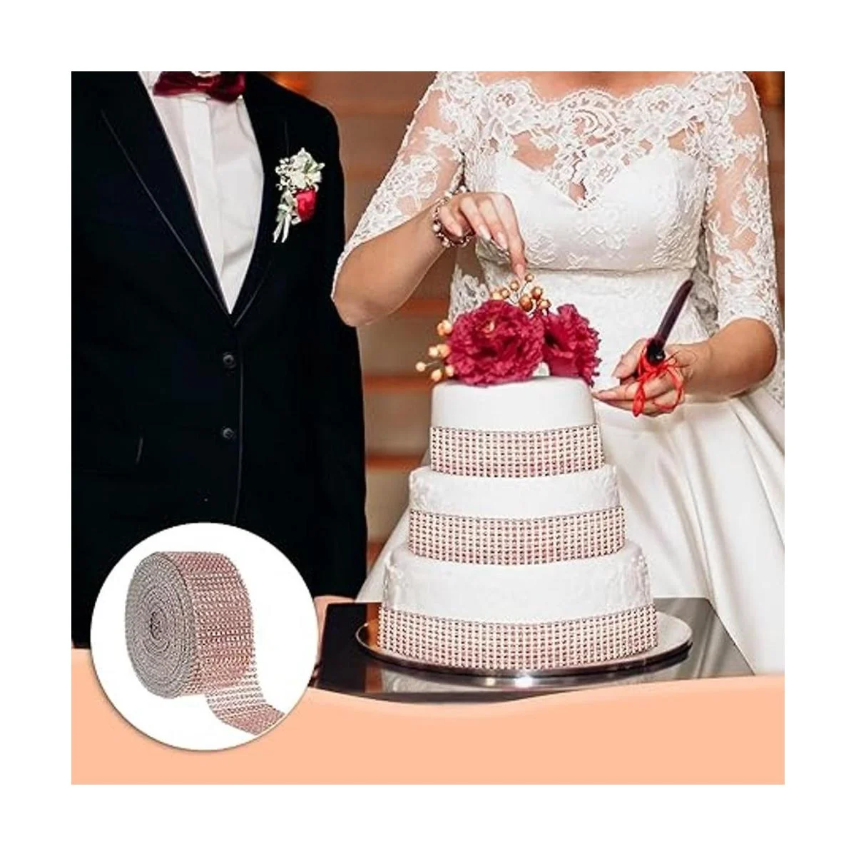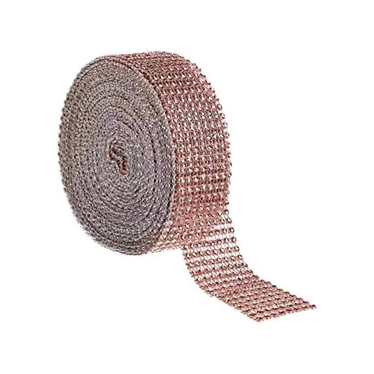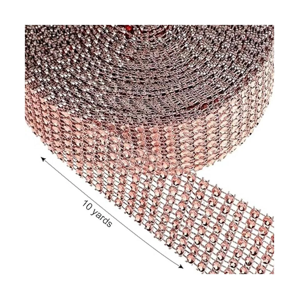 Cinta acrílica de diamantes de imitación de 10 yardas para tartas de boda, decoraciones de cumpleaños, eventos de baby shower y proyectos de arte y manualidades oro rosa, 8 filas