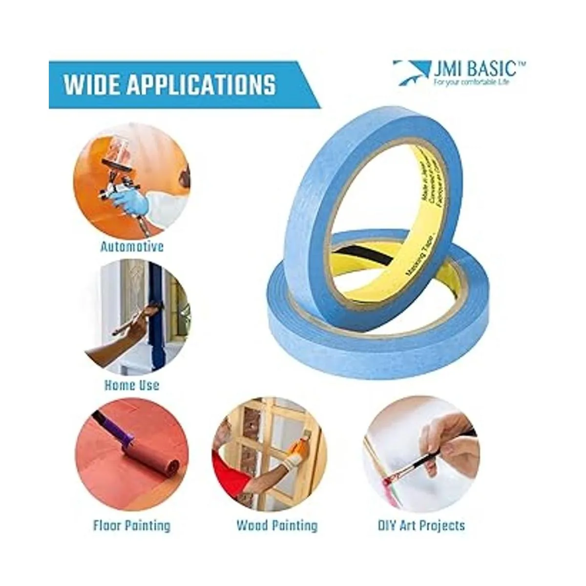 Amplias aplicaciones: la cinta adhesiva washi JMI BASIC fue diseñada para todos los profesionales y el hogar, oficina, uso escolar, siendo ideal para pinturas de alto rendimiento de grado industrial como automoción, suministros eléctricos, superficie de cama de impresora 3D, tira LED, CPU de PC, vidrio, molduras, papel pintado, lienzo, hoja, tela de gota y madera, perfecta para bricolaje, artes, kraft, proyectos y mucho más.
