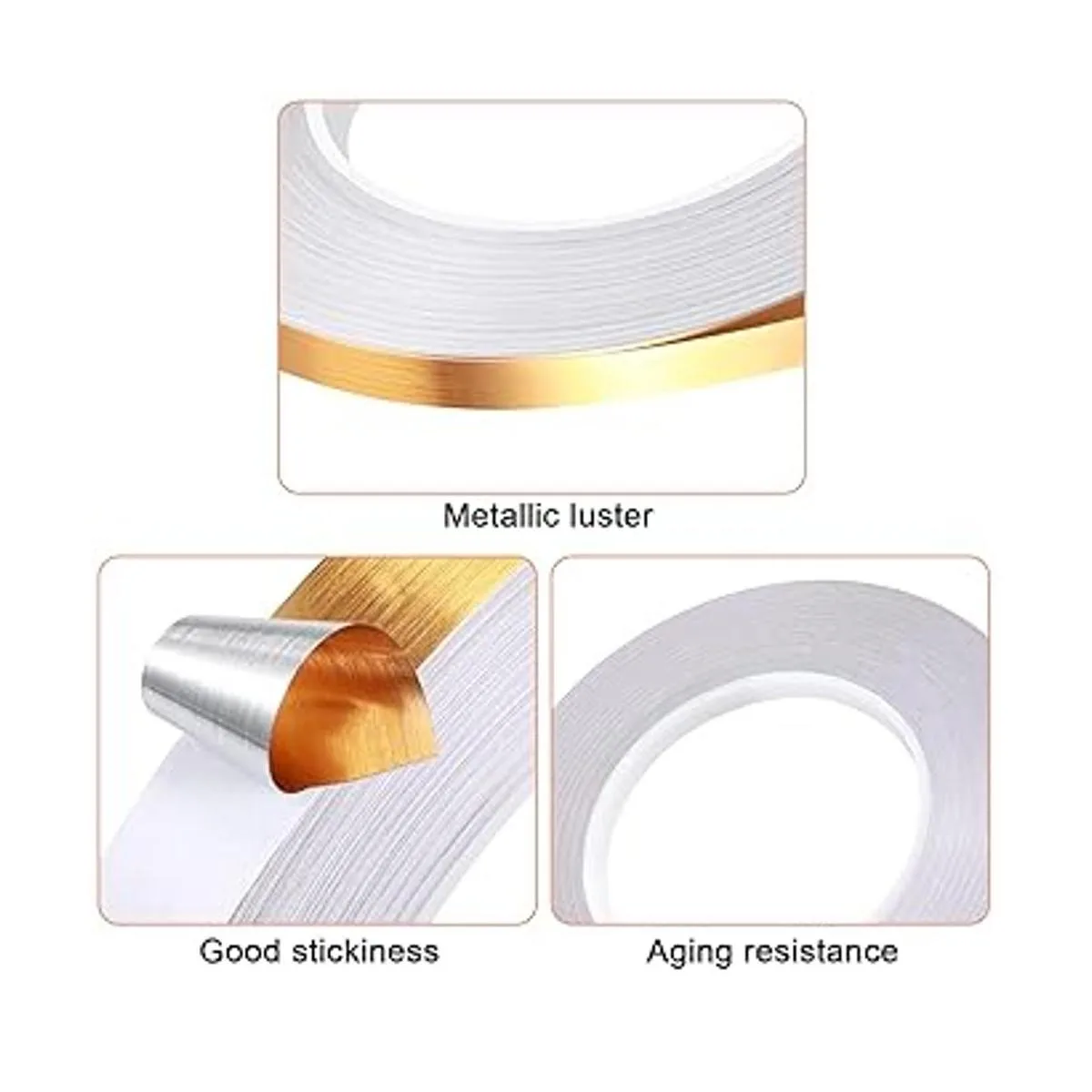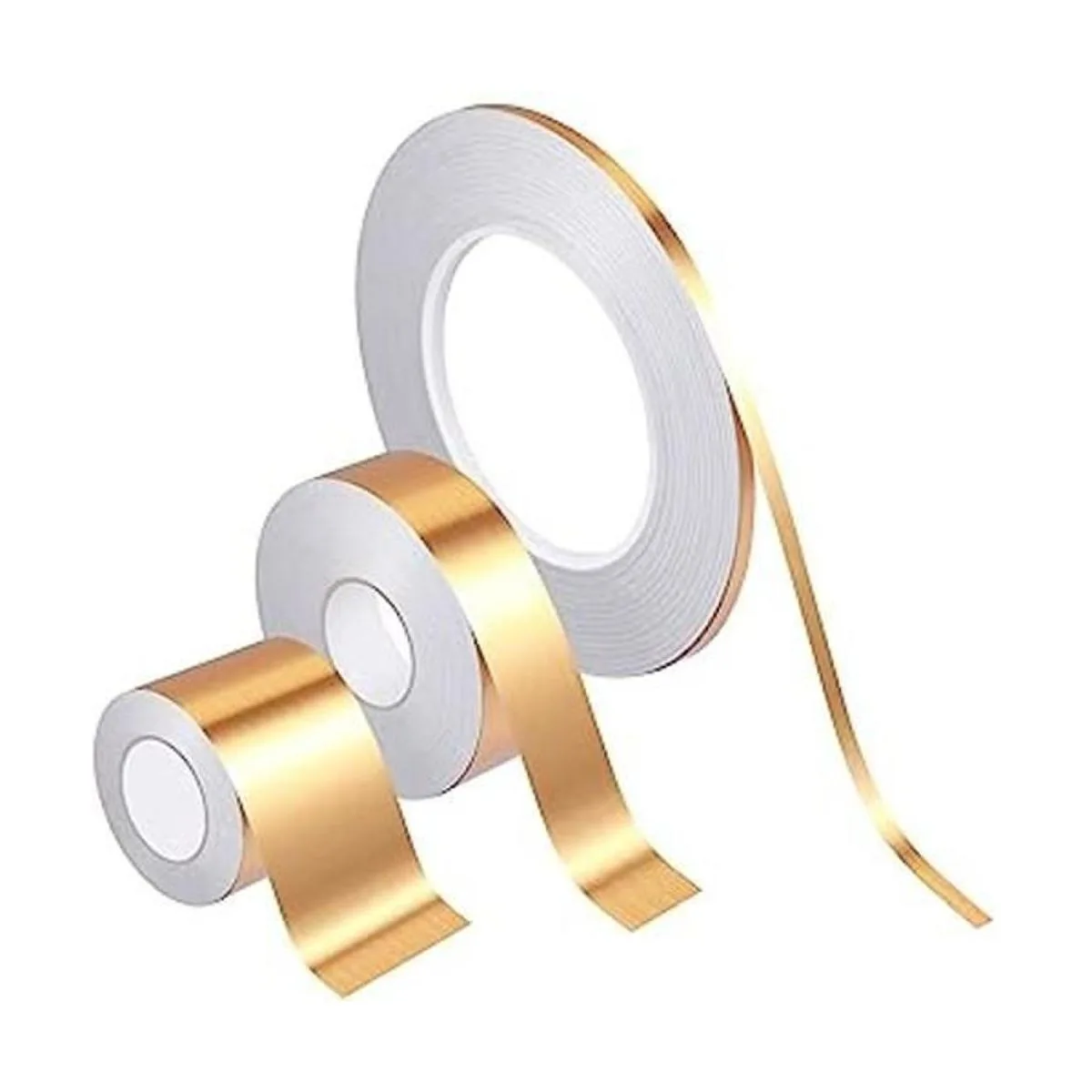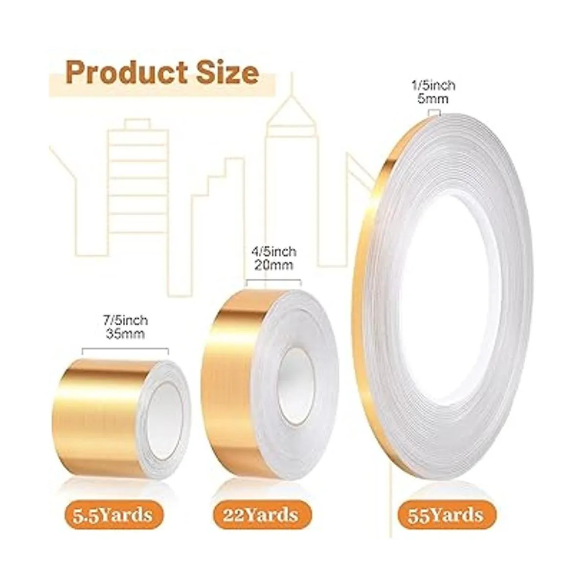 Cinta adhesiva de poliéster metalizado de 3 rollos para decoración de Navidad, arte gráfico para automóviles y barcos, 3 tamaños varios tamaños, dorado