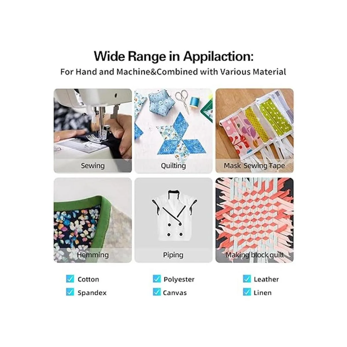 Amplia gama de aplicaciones: nuestra cinta de doble pliegue es de 164.0 ft, 0.512 in de ancho; perfecta para tu kit de cinta al bies, máquina y manos; se adapta a tus diferentes necesidades de costura, recorte, encuadernación de bordes rectos y curvos, dobladillo, fabricación de ropa y material para coser máscaras, delantal de Navidad, gorras quirúrgicas, corbatas, edredón de bebé, soportes para ollas, colcha, mantel individual S, tazas, tienda de campaña, etc.