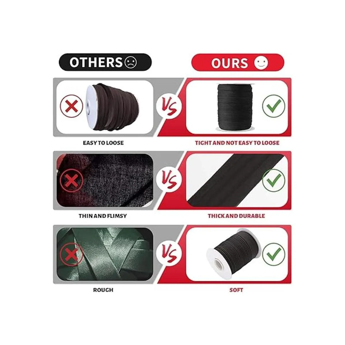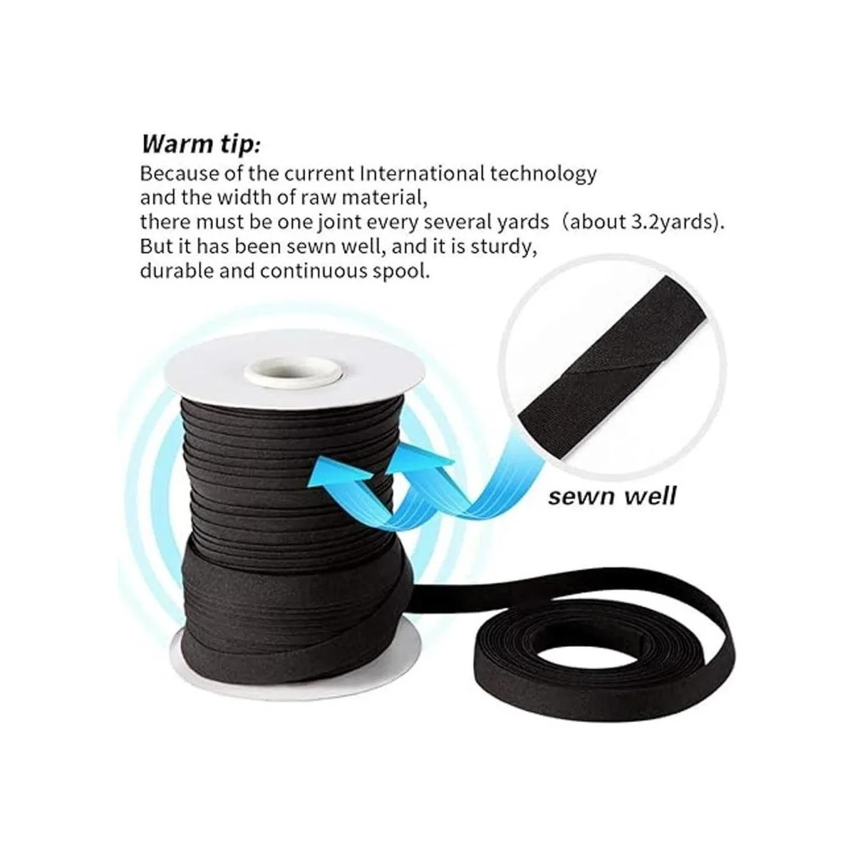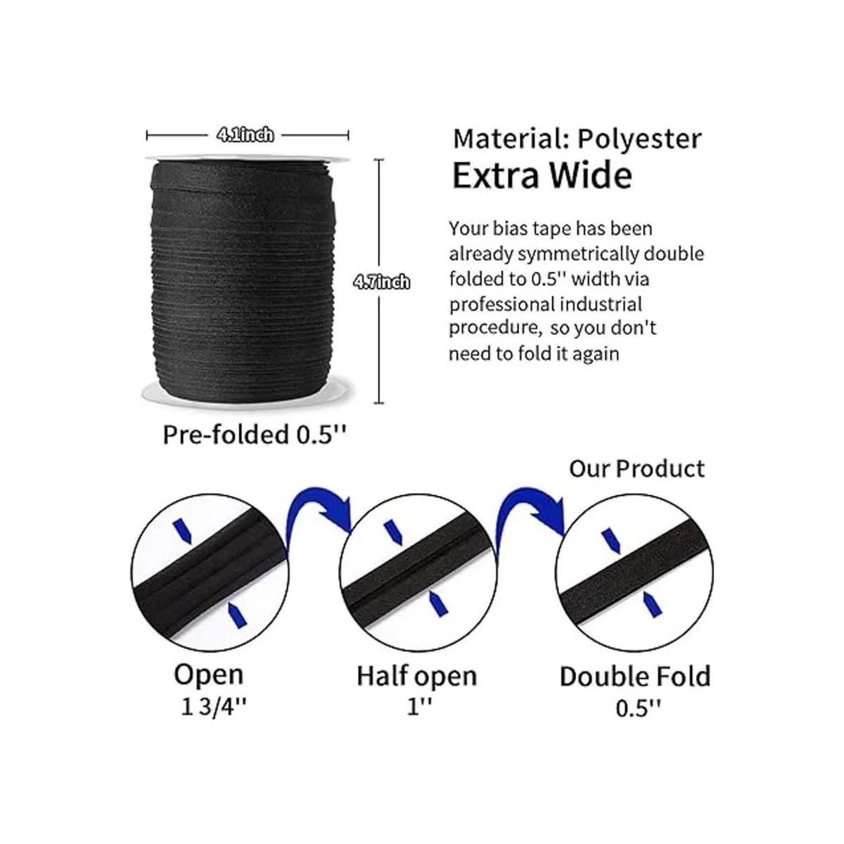 Cinta bies doble pliegue de 12 pulgadas, cinta bies de doble pliegue de 55 yardas, carrete continuo a granel para coser ropa, acolchado, encuadernación, decoración, manualidades, poliéster, no elástico 0.512 in, 164.0 ft, negro