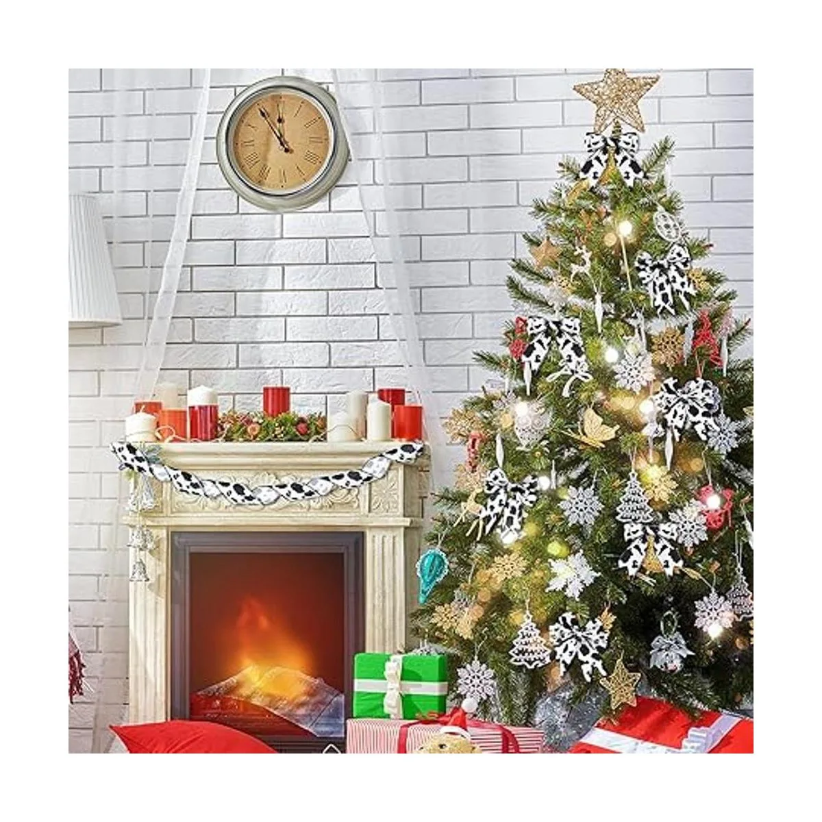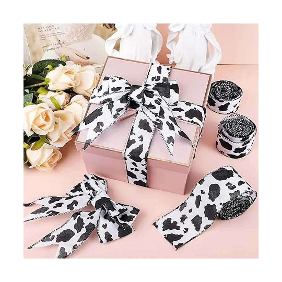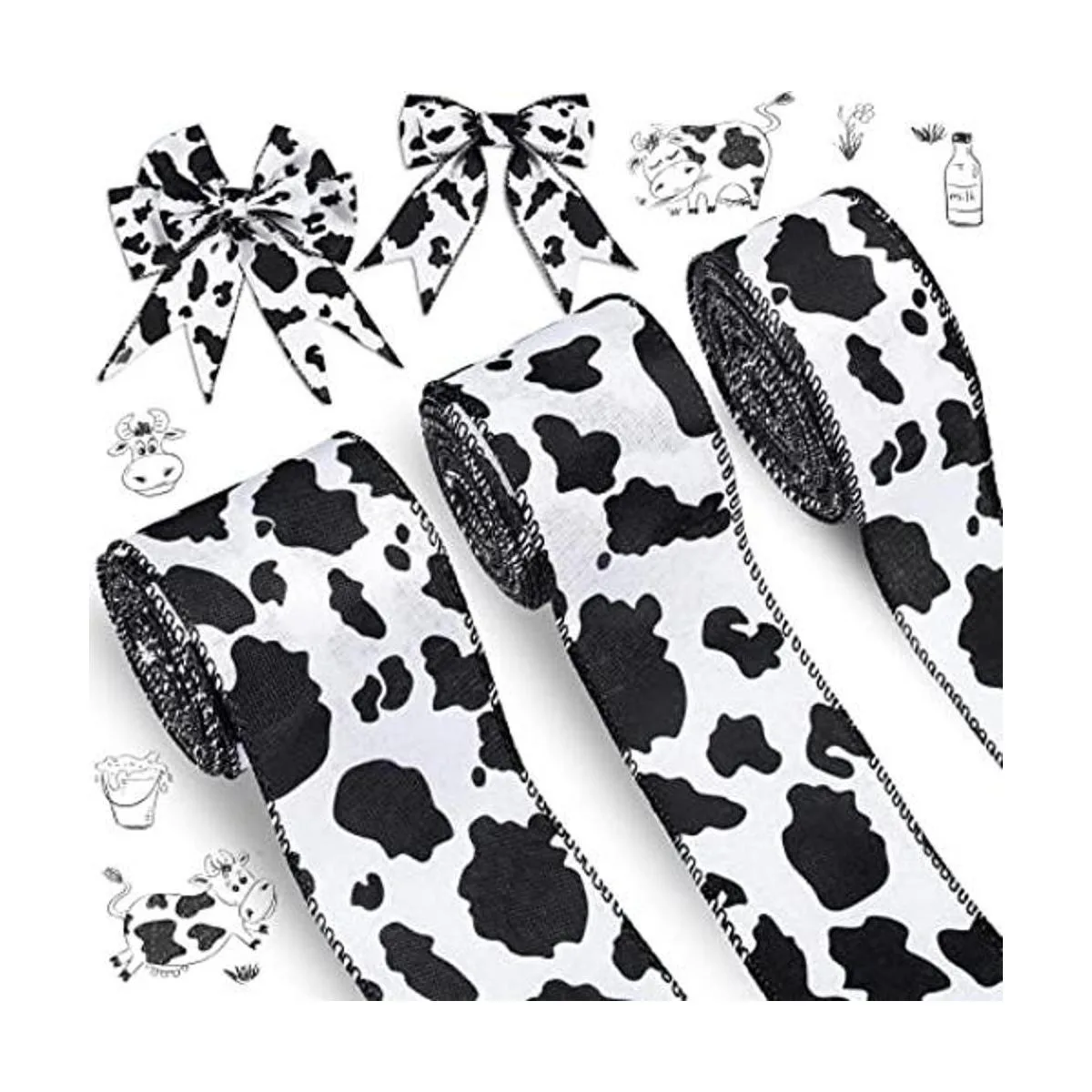 Cinta con alambre con estampado de vaca, 3 rollos de cinta de cuero de vaca de Navidad, cintas de arpillera, cintas de alambre negro y blanco, adornos de impresión de vaca, cintas de tela para manualidades, envoltura de regalos, decoración de ramo 20 yardas