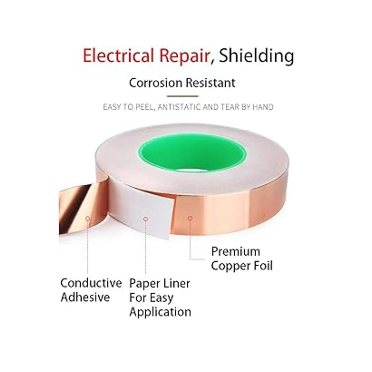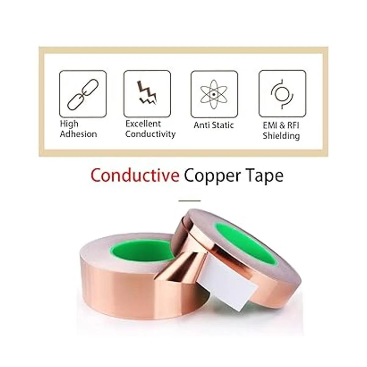 Cinta de aluminio de cobre con adhesivo acrílico conductivo, grosor total de 2,6 mil, para guitarra y blindaje EMI, artes y manualidades, reparaciones eléctricas, ancho especial para aplicación diversa