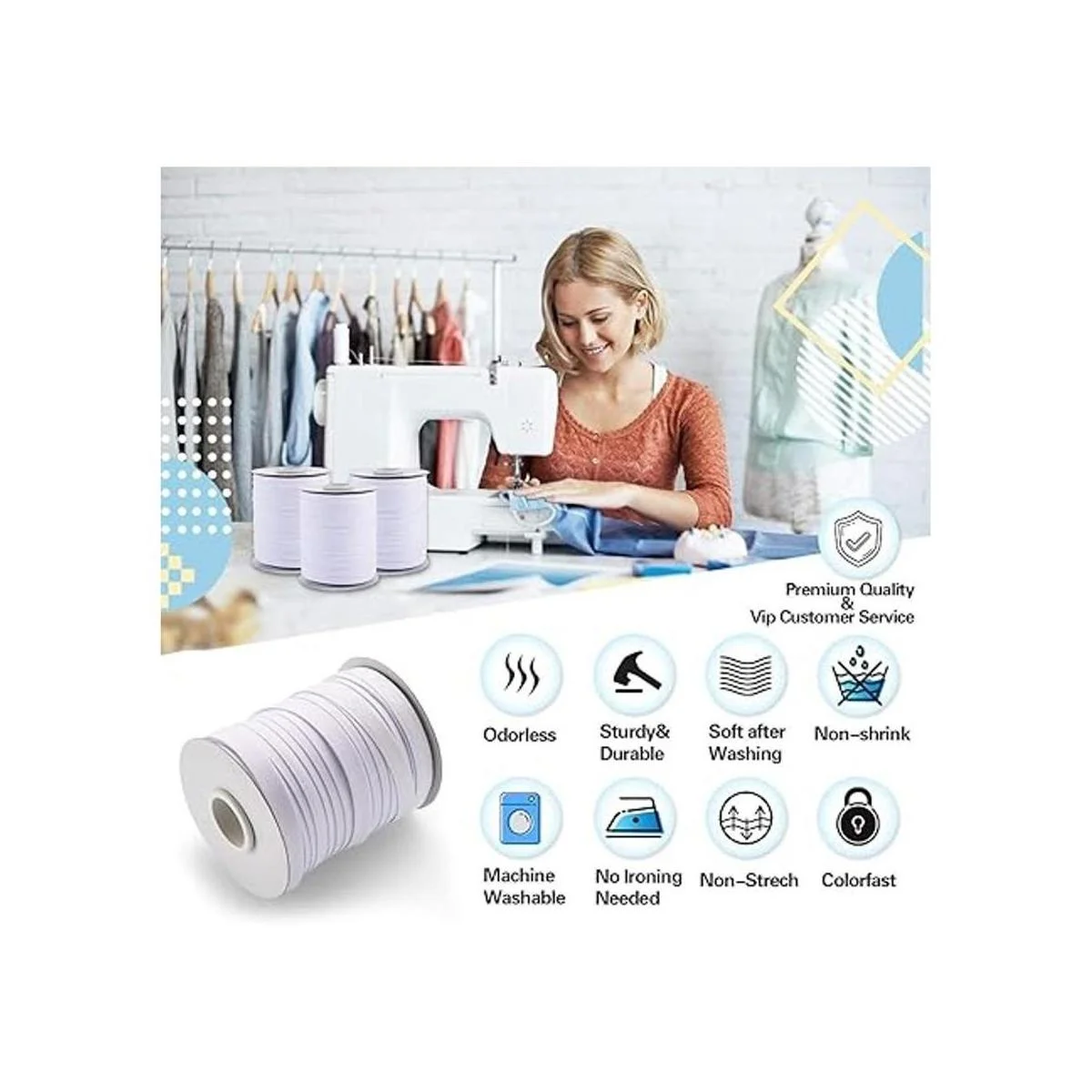 Cinta al bies o bies de tela de alta calidad: hecha de poliéster de alta calidad con corte al bies, y ambos bordes plegados son de igual ancho y están doblados en el centro; no es elástico, por lo que no es elástico de 1/2 pulgada para coser. Lo suficientemente ancho; lo suficientemente grueso; no rígido; suave después del lavado; no encoge; resistente y duradero; no necesita planchado; no destiñe; lavable a máquina y a mano; sin olor.