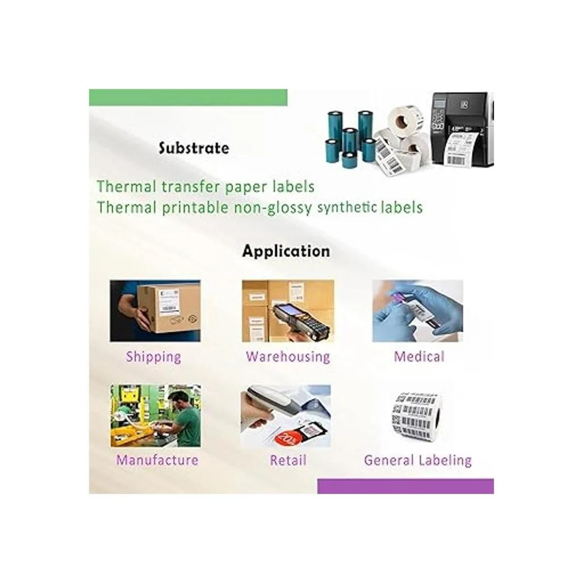 Cinta de cera negra ultra duradera, de resina de alta calidad mejorada para impresoras Zebra TSC GoDex Citizen, de 4.33 pulgadas x 1476 pies (4.331 in x 1,476.4 ft), de 1 pulgada de núcleo (1 rollo)