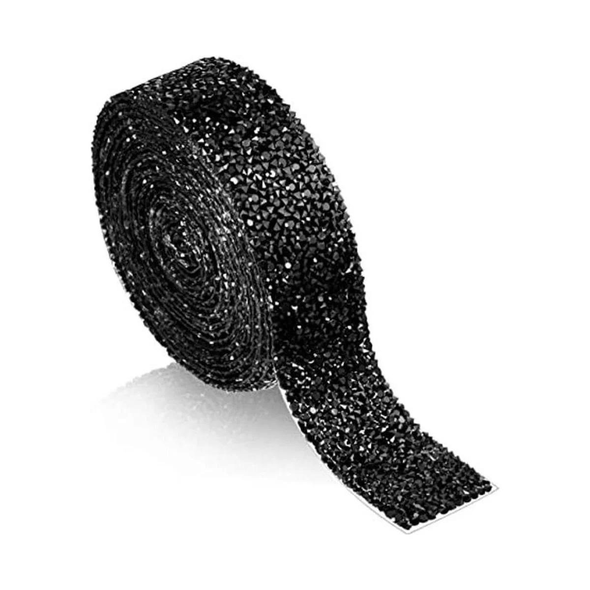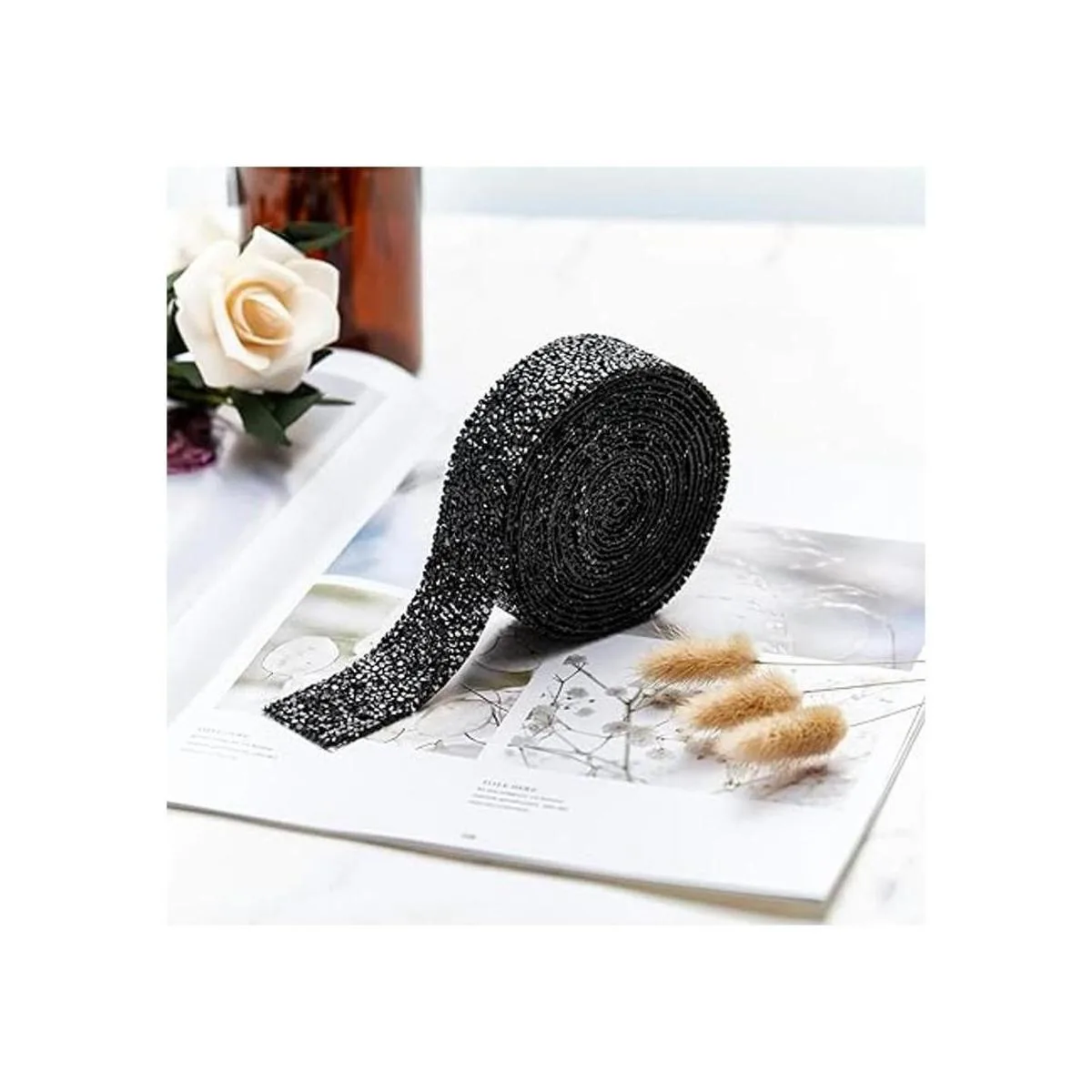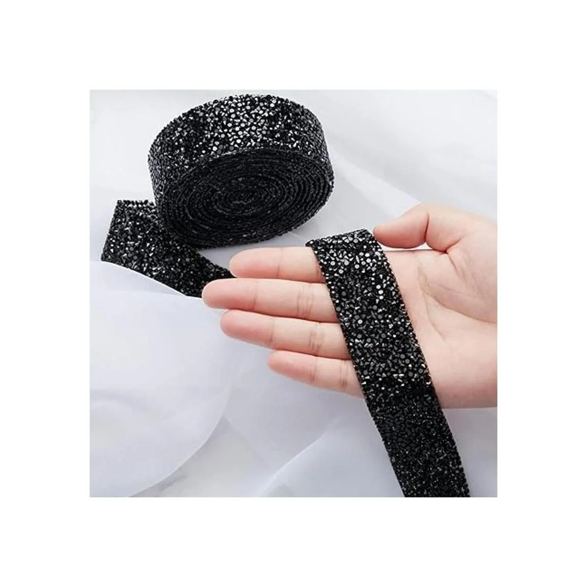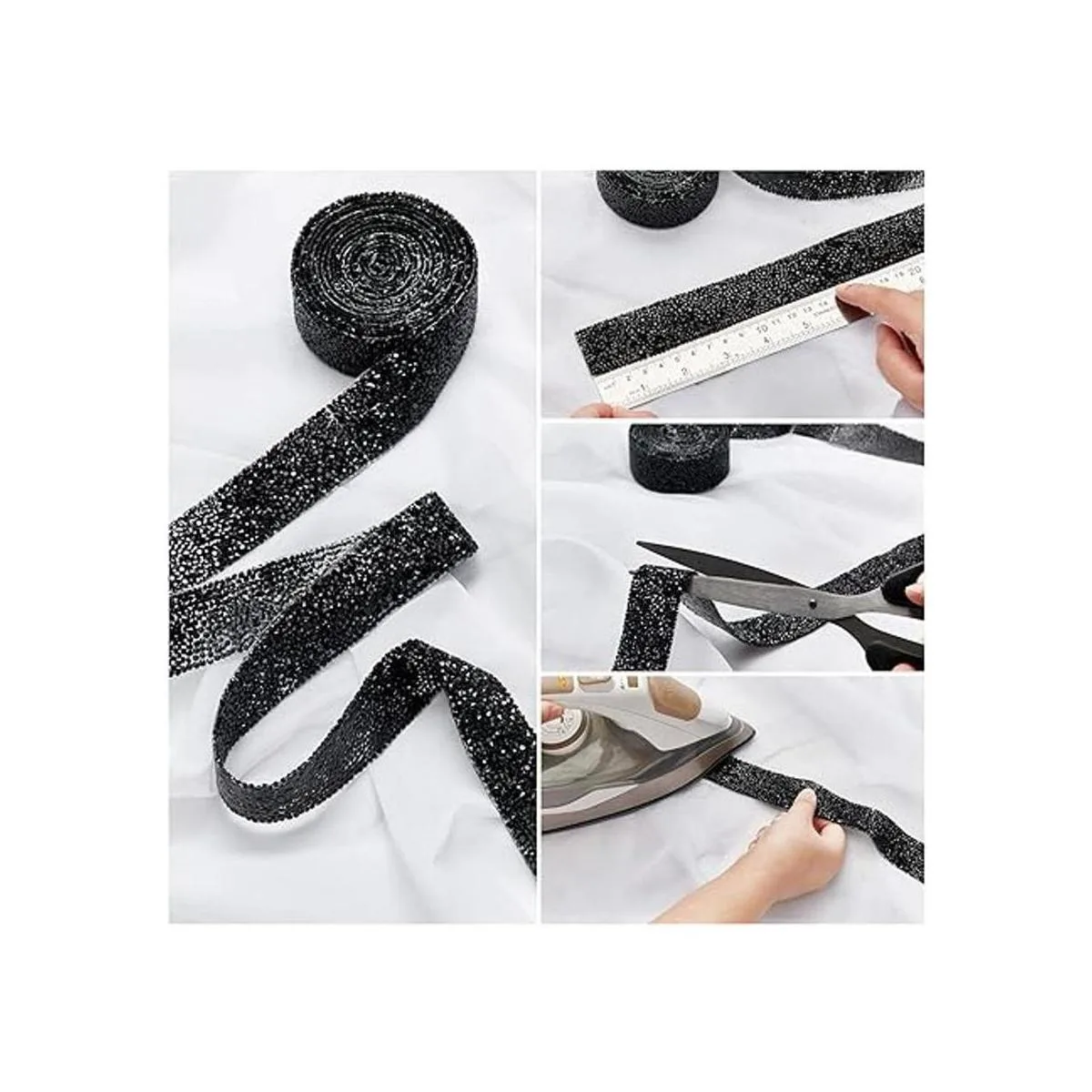 Fácil de pegar: la cinta negra de diamantes de imitación está hecha de material de resina de calidad, con adhesivo termofusible en la parte posterior, se puede pegar planchando, fácil de pegar a muchas superficies