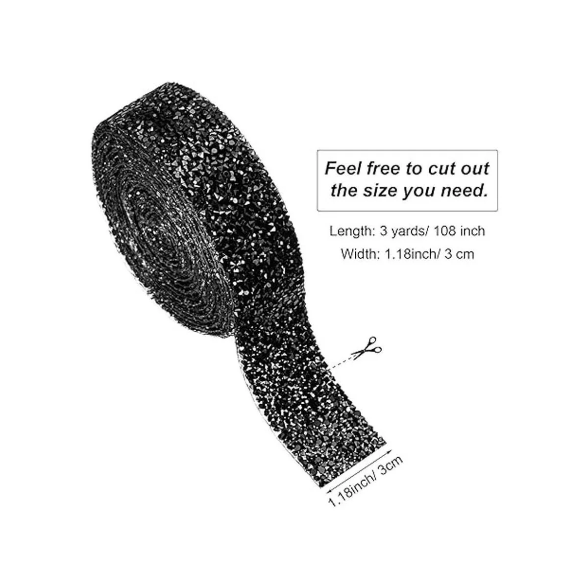 Tamaño: la longitud de la cinta de diamantes de imitación de cristal es de 3 yardas y el ancho es de 1.2 in, puedes cortar la longitud de las cintas de acuerdo a tu preferencia