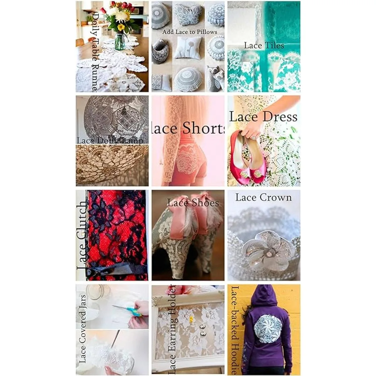 Más de 35 proyectos de encaje para ti, vestido de encaje, bufanda de encaje, cinta de encaje, cintas de encaje, coronas de princesa de encaje, votivas de encaje negro, chaqueta de mezclilla de encaje de los años 80, joyería de encaje ombre, macetas de encaje, azulejos de encaje, atrapasueños de encaje, añade encaje a almohadas, cuaderno con patrón de encaje, bolso de panel de encaje, pulseras de arandela de encaje, pantalones cortos de mezclilla de encaje, camino de mesa de encaje Plantilla de pintura de tela para pintura StCuencos de encaje, lazo de encaje, sudadera con capucha con espalda de encaje, plantilla de encaje, servilletas, etc.