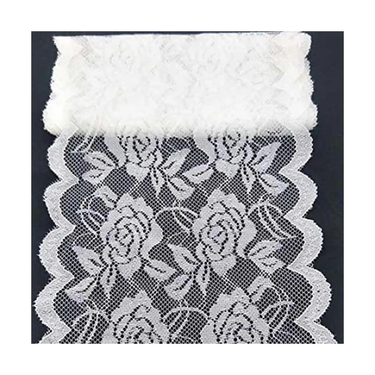 Cinta de encaje bordada de 11 yardas de ancho, 6 pulgadas, tela elástica para costura, manualidades, adornos de ropa, decoración de mesa de fiesta de arpillera blanco