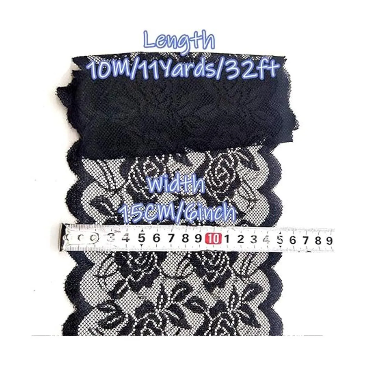 La cinta de encaje es de 36.1 ft de largo, 5.9 in de ancho en varios colores como encaje blanco, encaje negro, encaje marfil, encaje beige, encaje rosa fuerte, encaje rosa, encaje rojo, cinta de encaje rosa, cinta de encaje azul real, cinta de encaje azul marino, cinta de encaje azul cielo, encaje verde, encaje naranja, encaje lavanda, encaje morado, encaje gris, etc. Perfecto para decoraciones de invitación de boda.