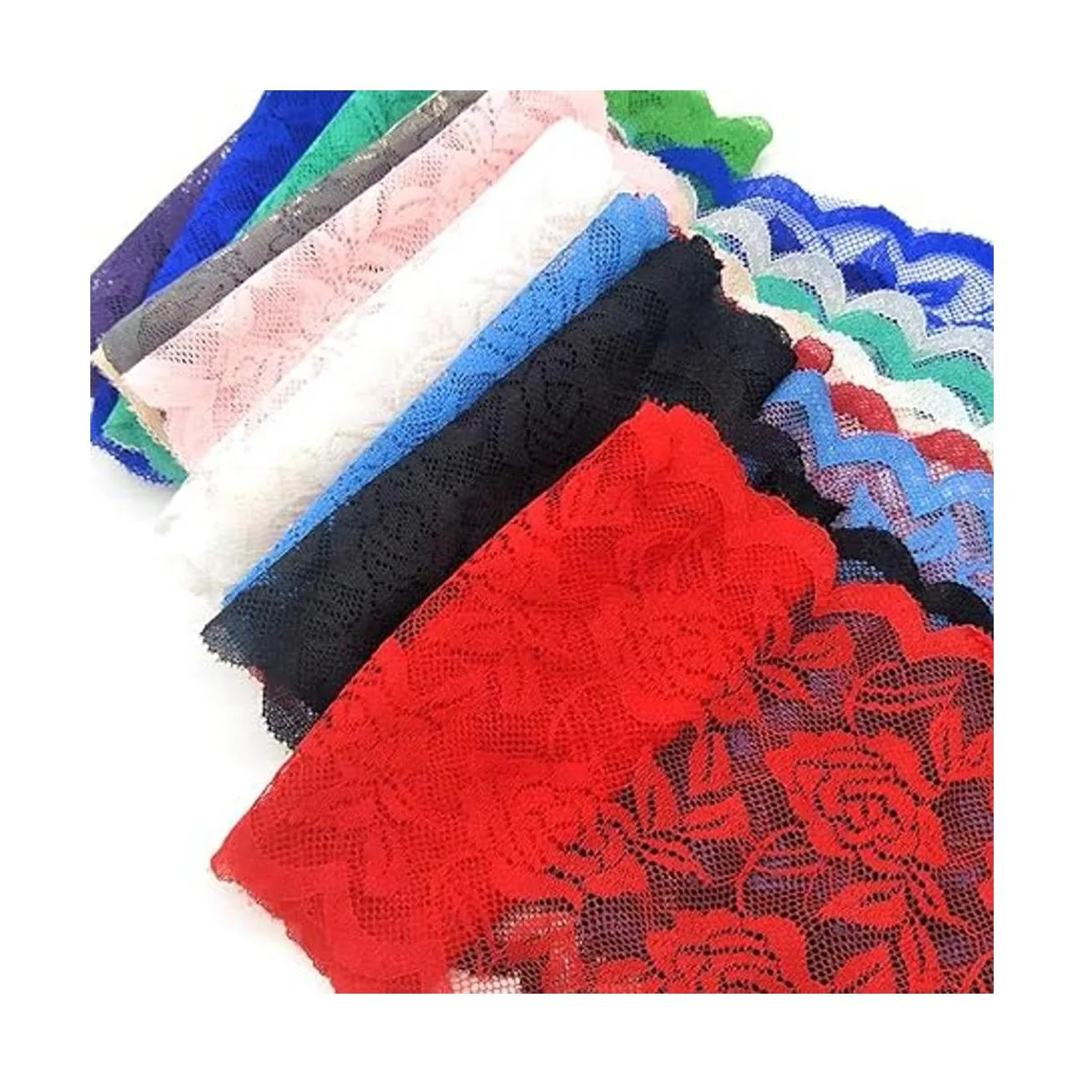 El encaje elástico está hecho de algodón y poliéster de alta calidad con patrones de bordado floral, que es elástico, suave y cómodo, perfecto para decoraciones de boda y manualidades.