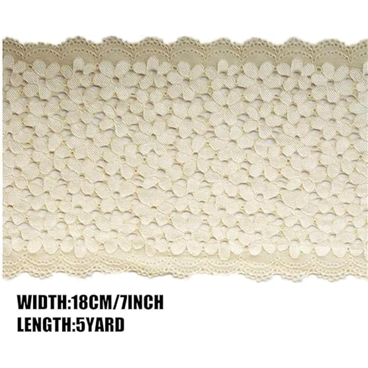 Cinta de encaje floral bordada elástica de 5 yardas para accesorios de cabello, manualidades, boda, fiesta, decoración beige