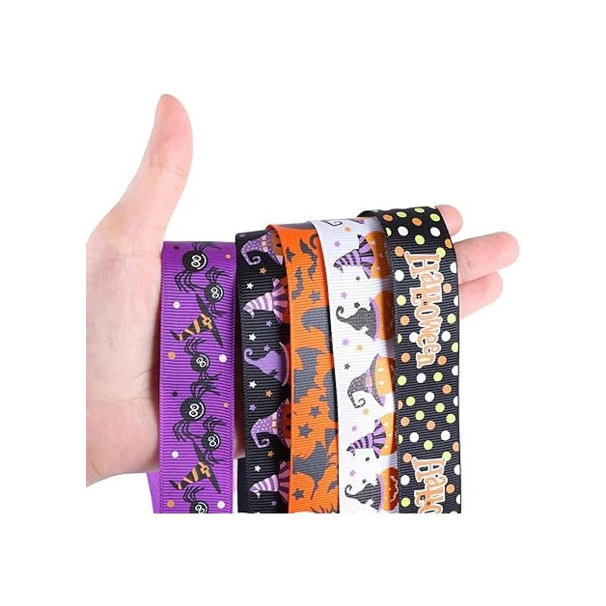 15 patrones de Halloween: las cintas de manualidades de Halloween están impresas con elementos temáticos clásicos de Halloween en un solo lado, incluyendo fantasma, sombrero de bruja, calabaza, calavera, murciélagos, etc. Patrón de impresión nítido y claro, tan lindo y se adapta al tema de Halloween, cintas decorativas de grogrén de Halloween para guirnalda de corona, fiesta de vacaciones.